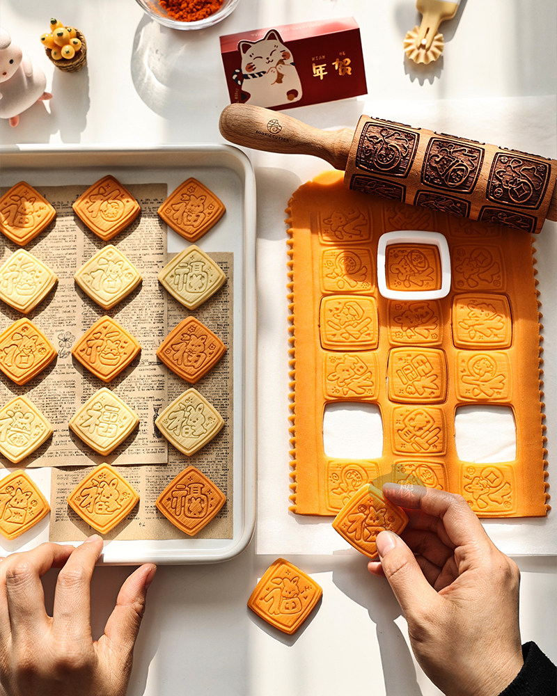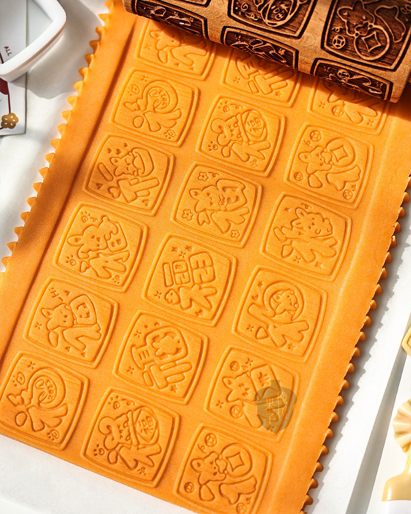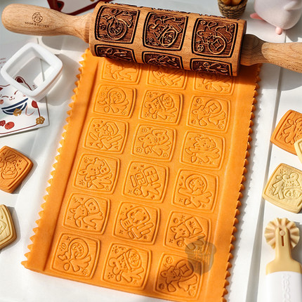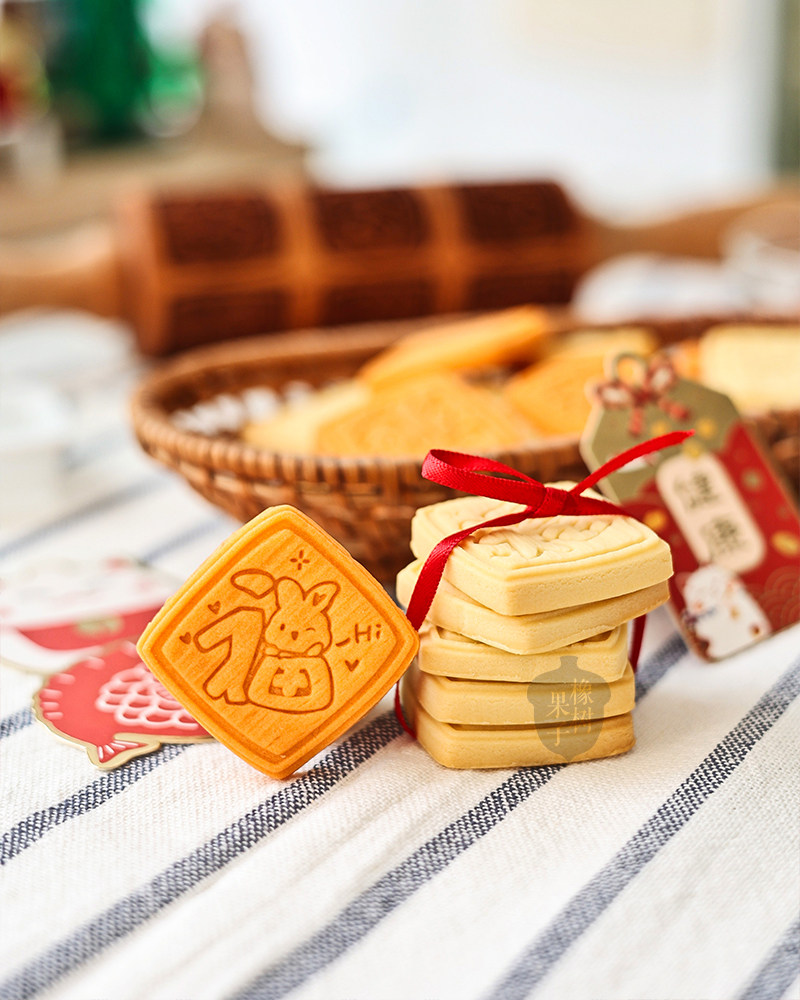 橡树果子中式卡通小兔子祝福语立体滚轮饼干模春节兔年烘焙擀面杖
