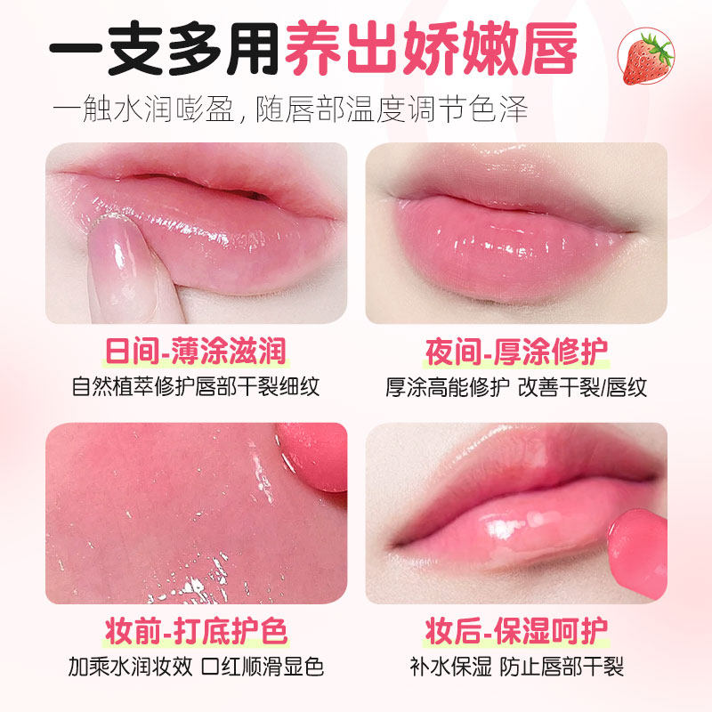 草莓果温变润唇口红女不掉色不沾边淡化唇纹补水防干裂护唇膏官方
