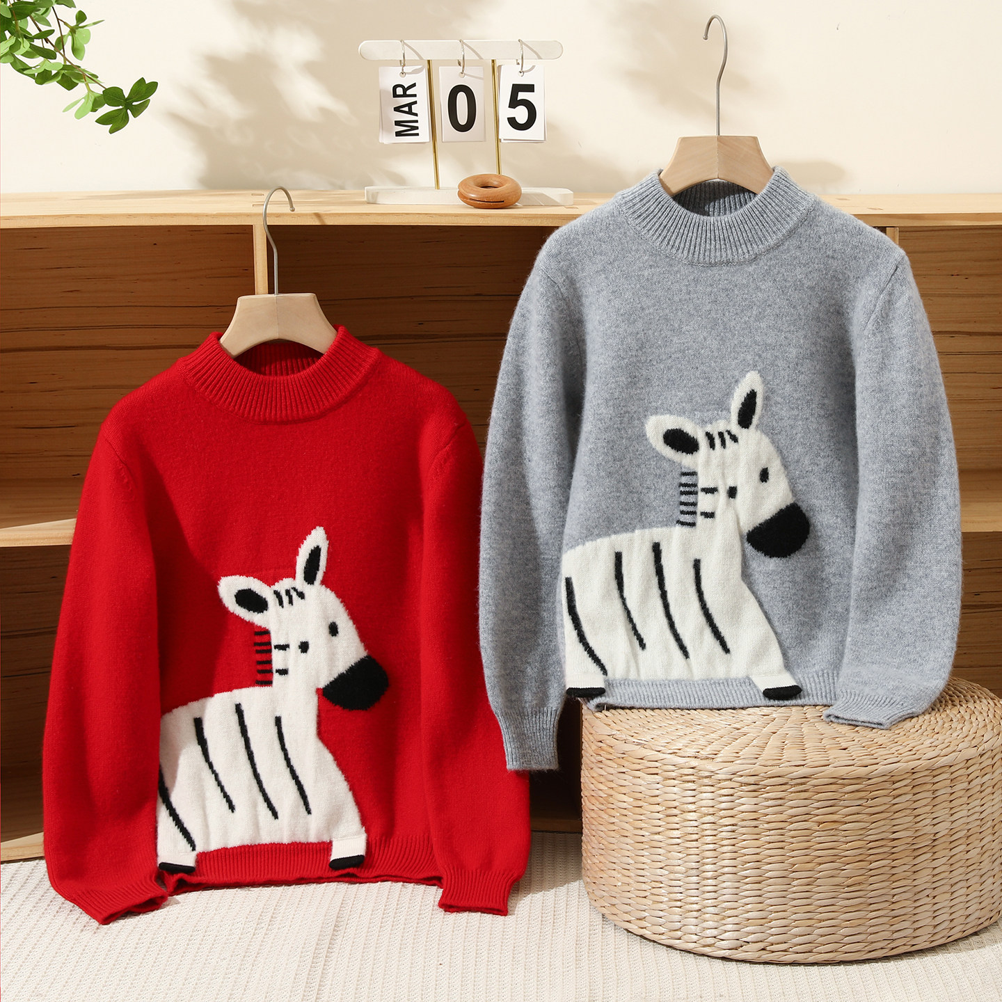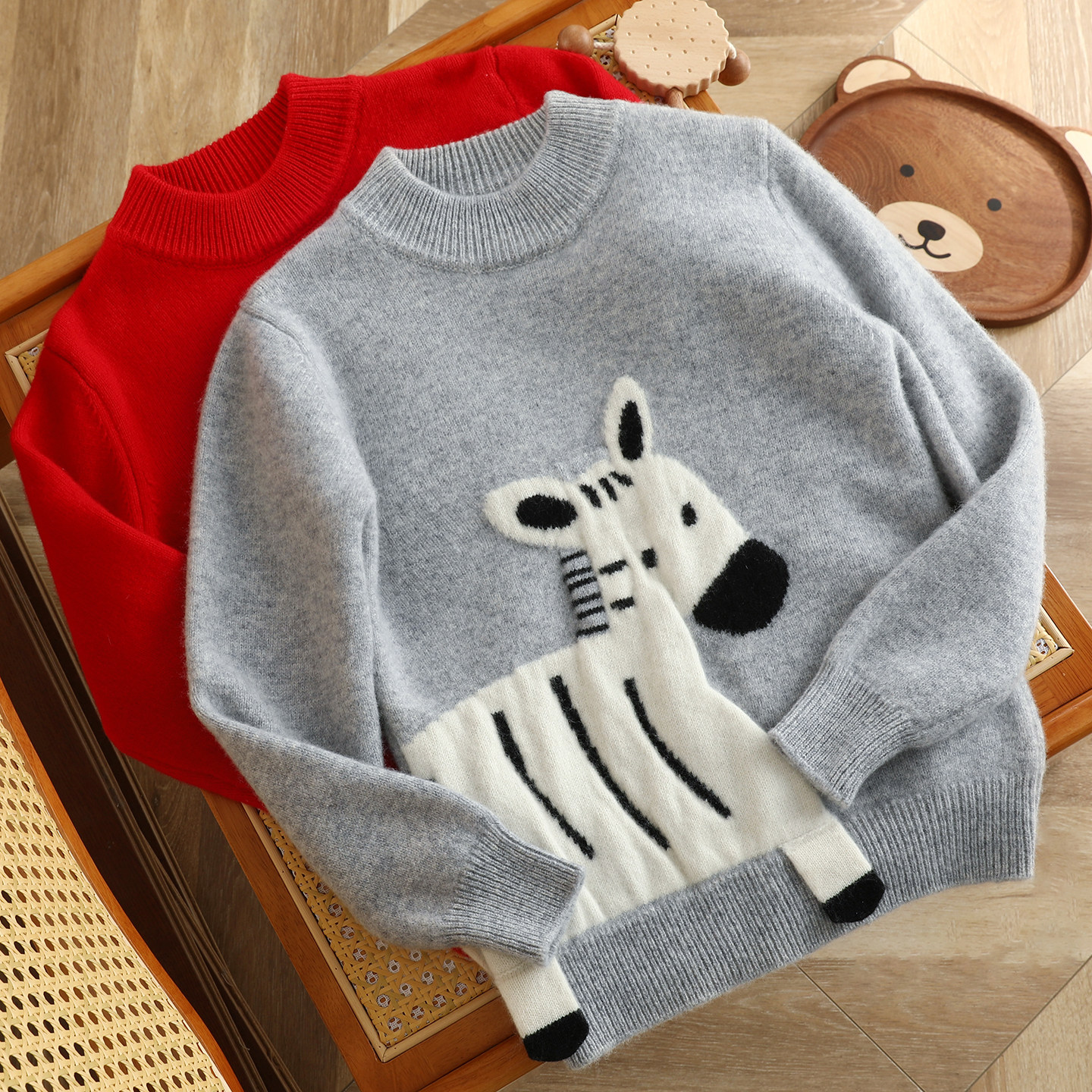 软萌斑马~儿童卡通斑马羊毛衫男女童同款针织毛衣宝宝加厚打底