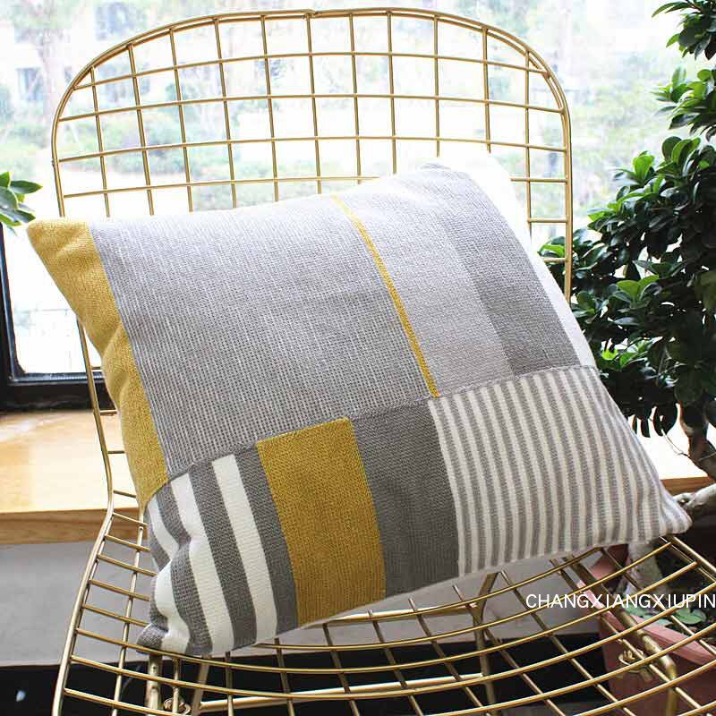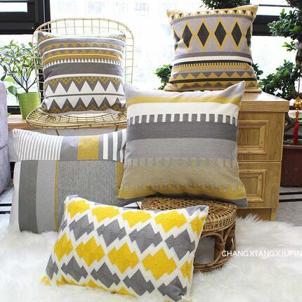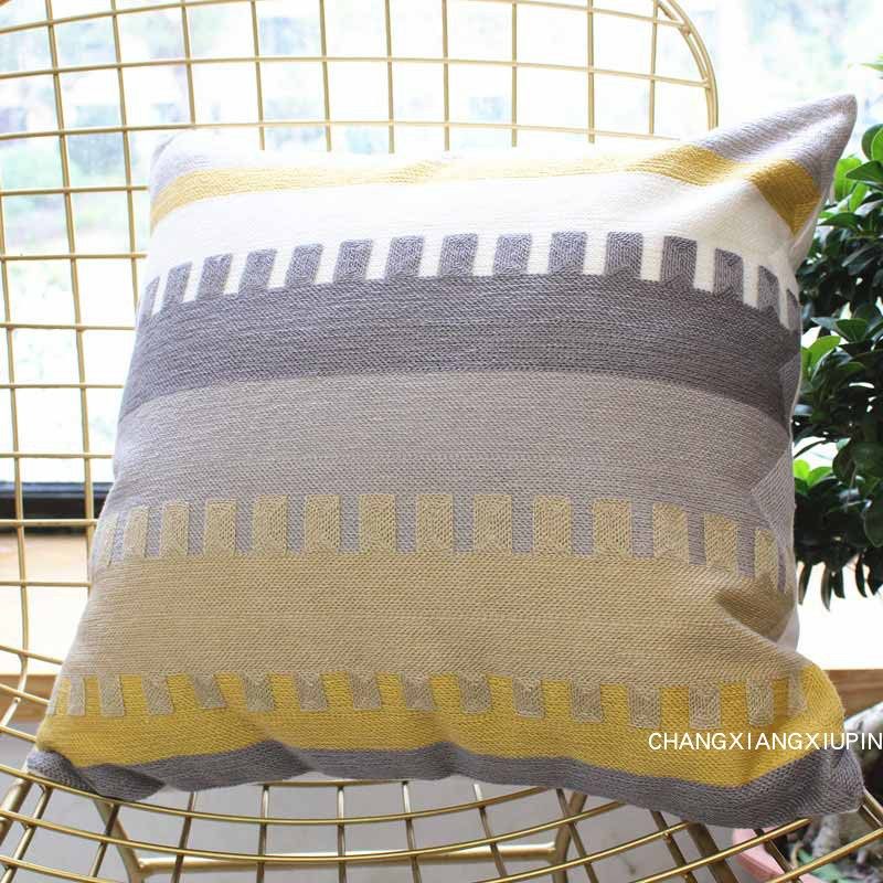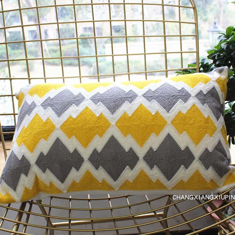 现代简约几何刺绣花抱枕套客厅车内沙发座椅长方形靠腰垫软包外皮