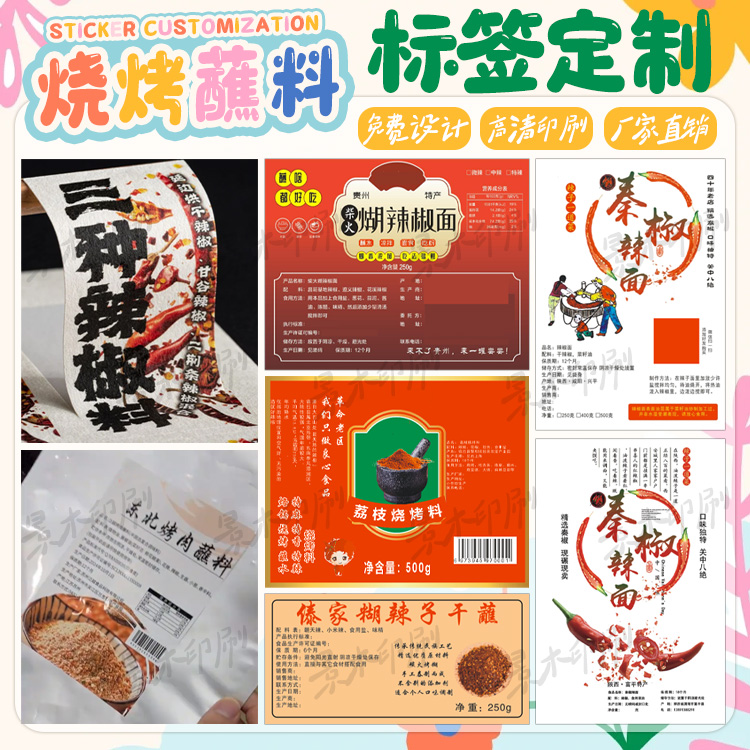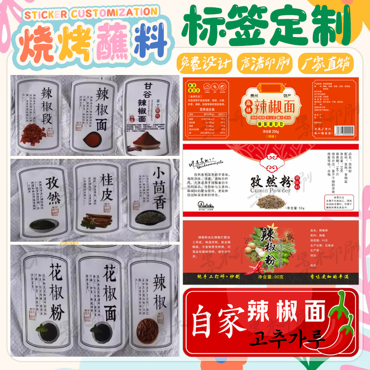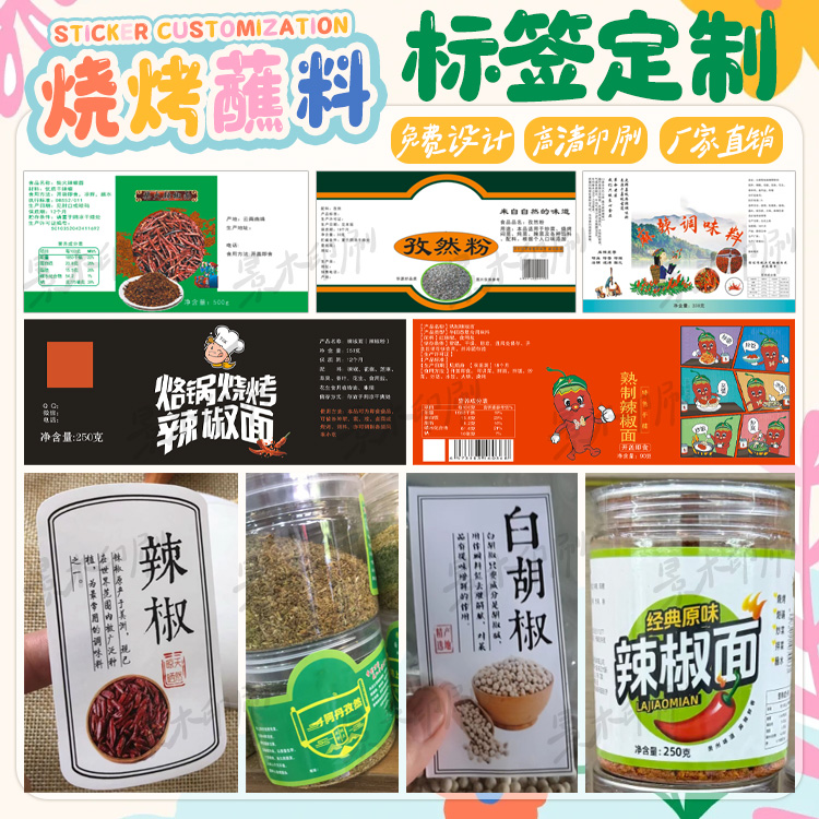 定制烧烤蘸料贴纸胡椒粉椒盐粉标签辣椒粉调味料不干胶五香粉标贴