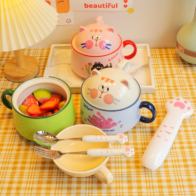 陶瓷可爱大众猫咪造型泡面碗