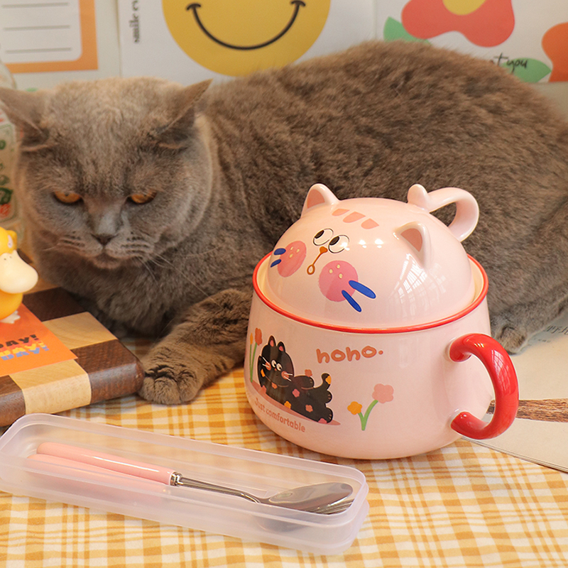 陶瓷泡面碗宿舍学生带盖可爱日式大容量可微波大号易清洗带餐具女