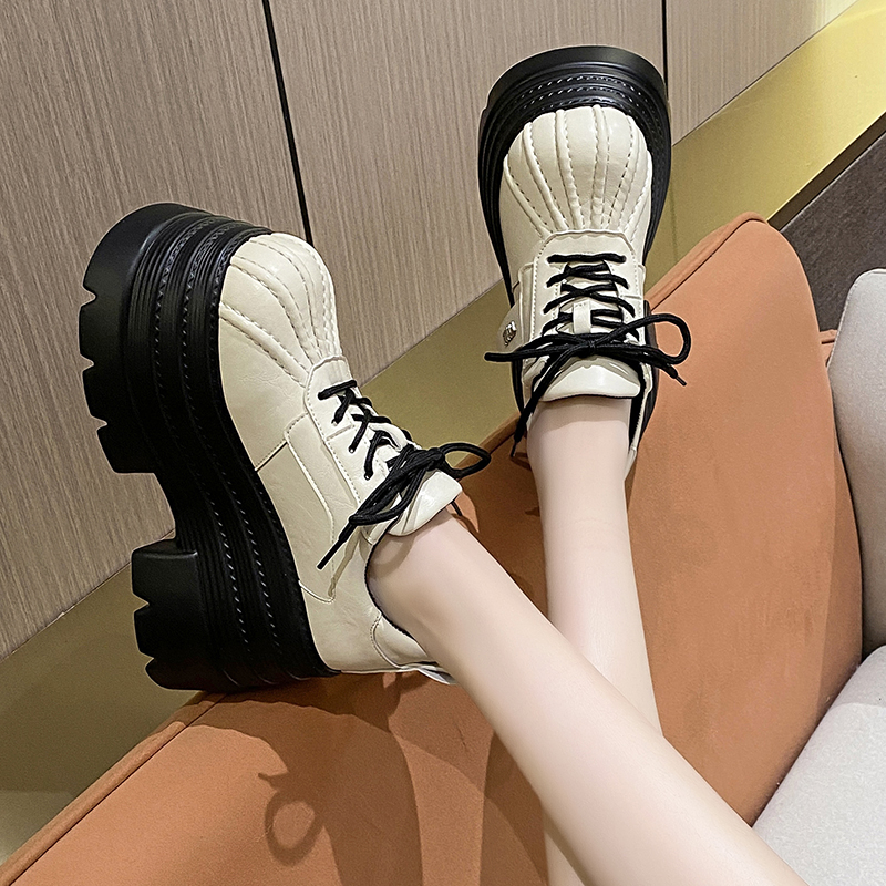 网红松糕厚底复古小皮鞋女2025秋季新款单鞋高跟贝壳头系带乐福鞋