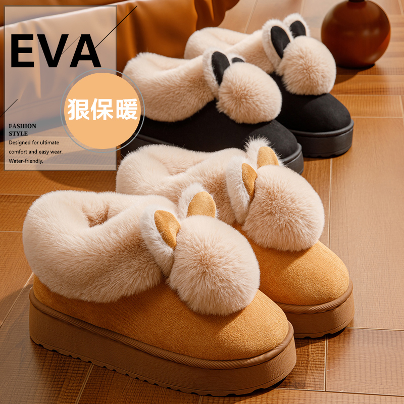 毛绒兔棉拖鞋女款冬季2025新款室内家居防滑厚底保暖毛绒包跟外穿