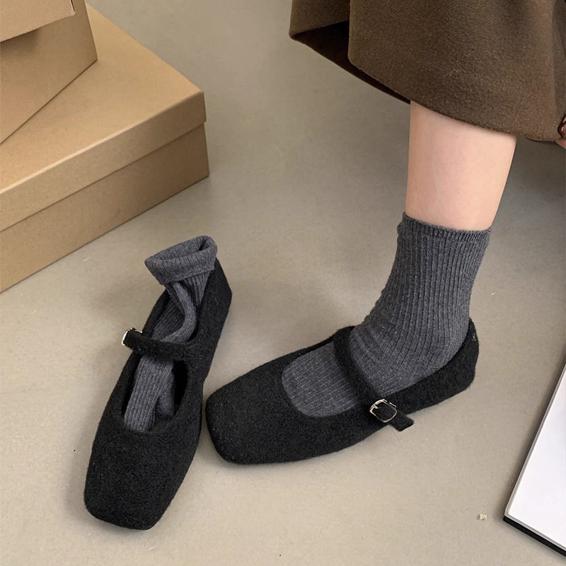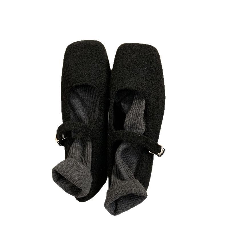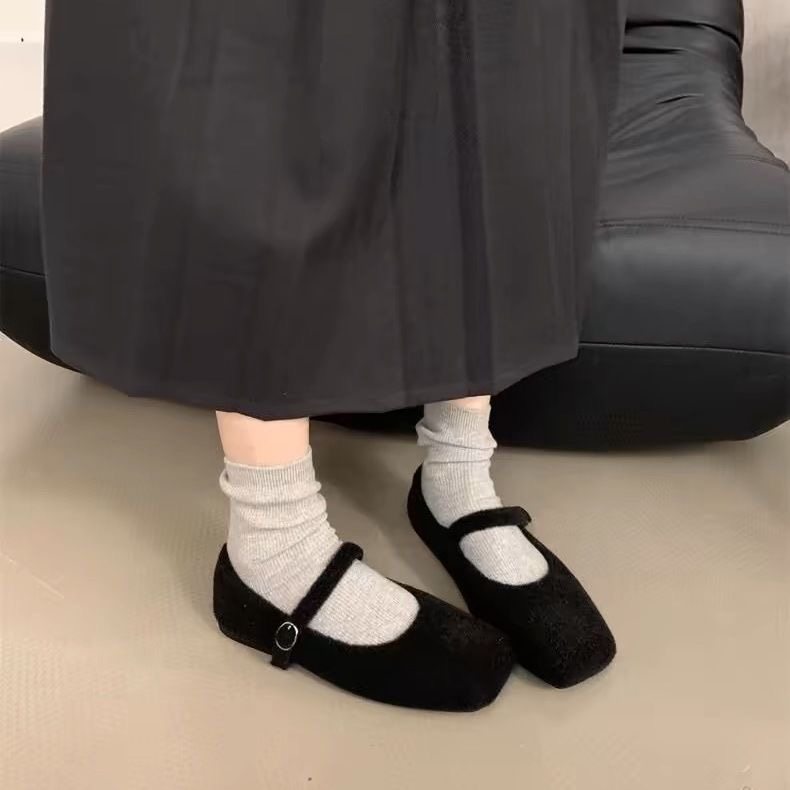 34码33小码女鞋2025超火毛毛鞋外穿新款软底豆豆鞋粗跟加绒单鞋