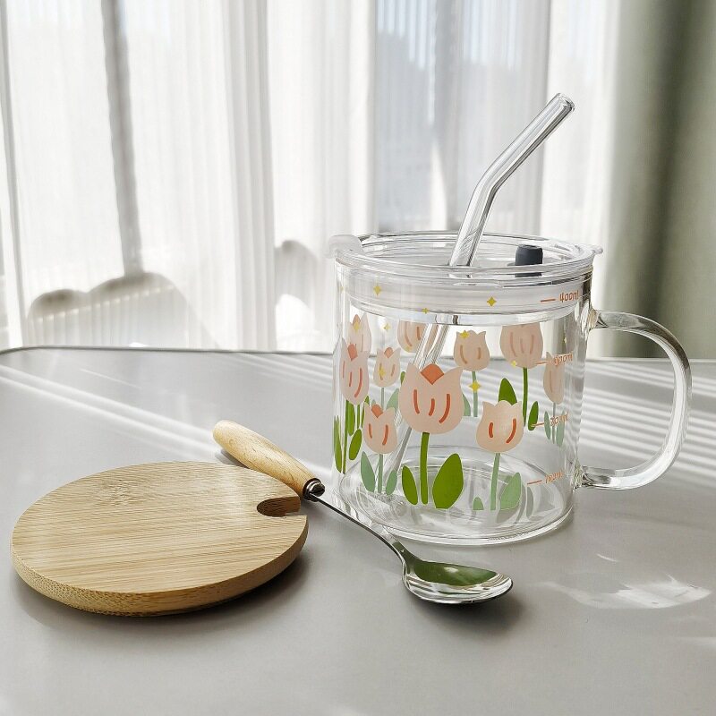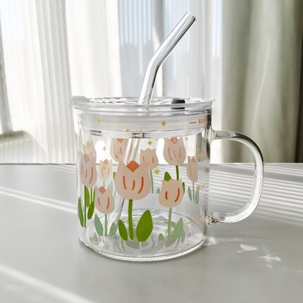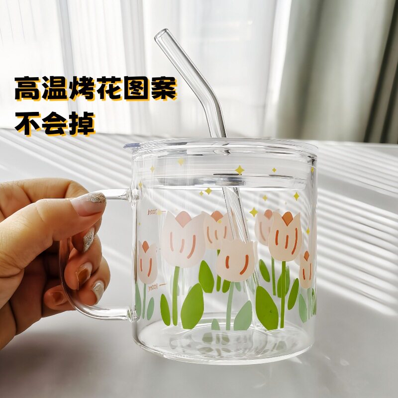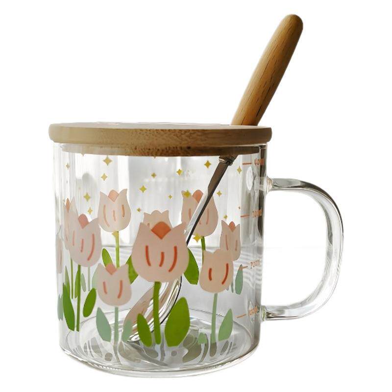 清新玻璃杯女高颜值带盖家用刻度牛奶早餐茶杯ins风饮料咖啡水杯