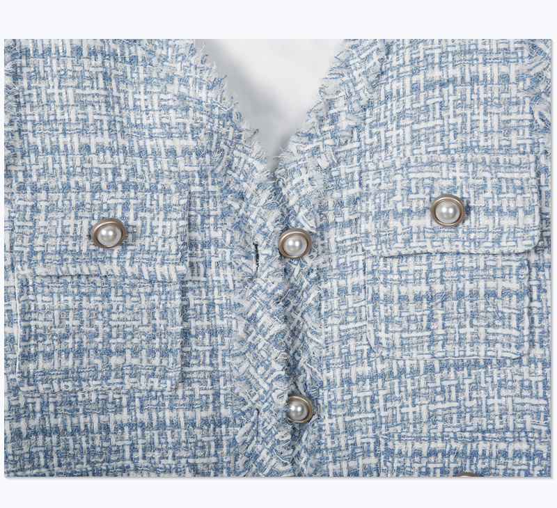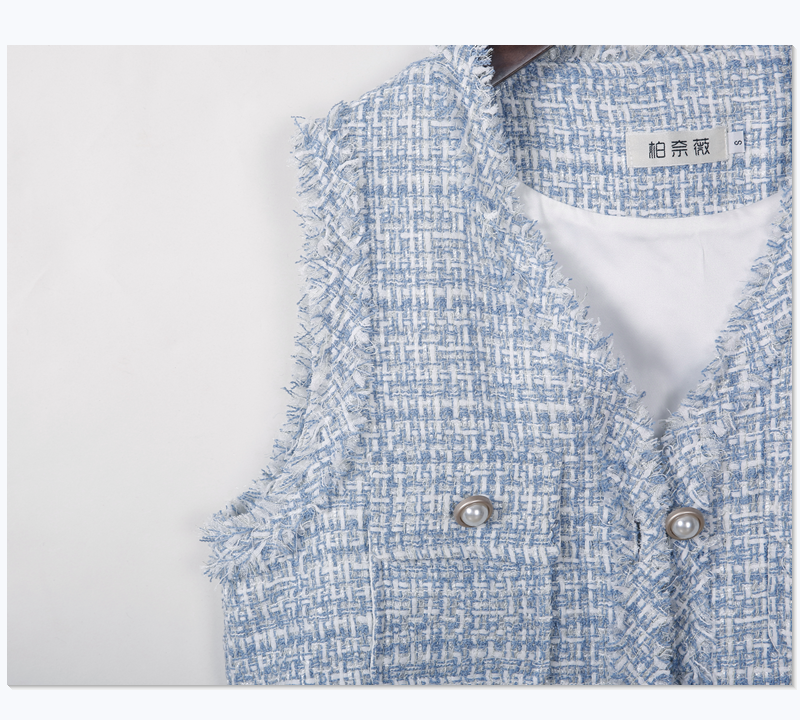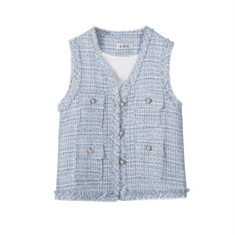 bonaiwei粗纺春秋马甲外套减龄淑女天蓝色小香风马夹宽松上衣女秋