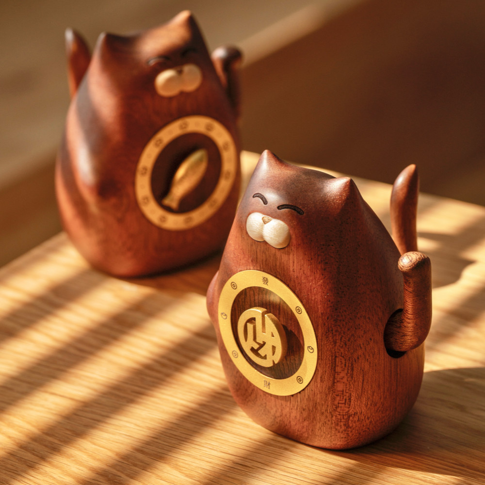 转运神喵实木招财猫摆件乔迁新居入职离职同事创意发财治愈系礼物