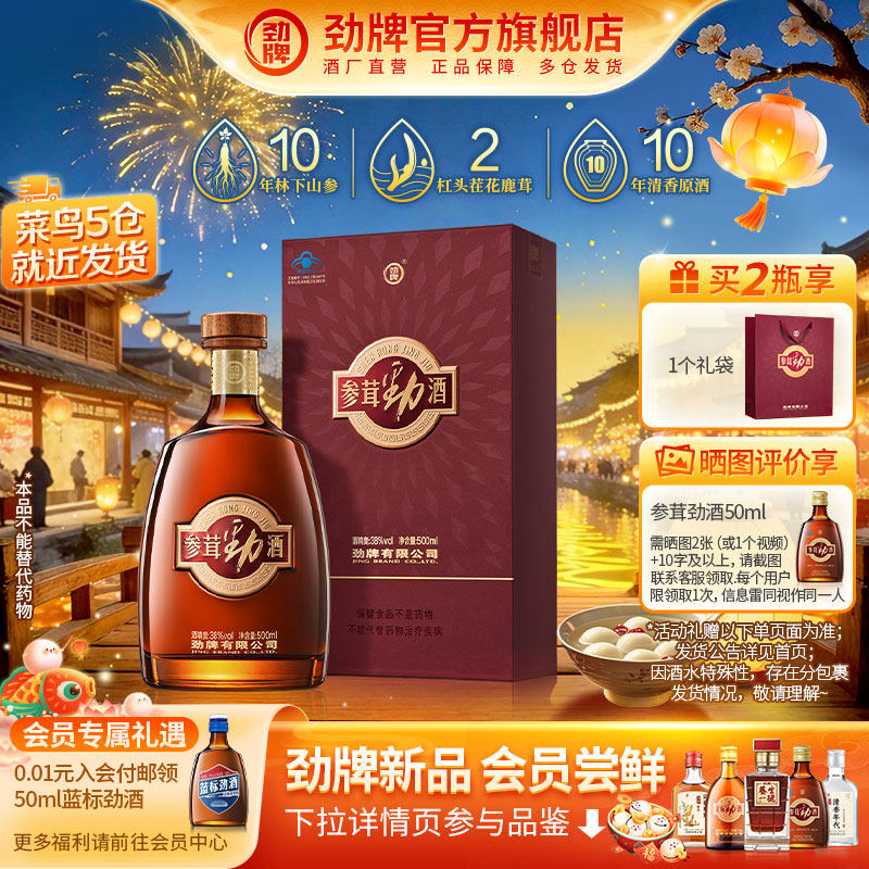 【38立抢】劲牌38度参茸劲酒500ml瓶装酒水送礼 人参鹿茸保健酒