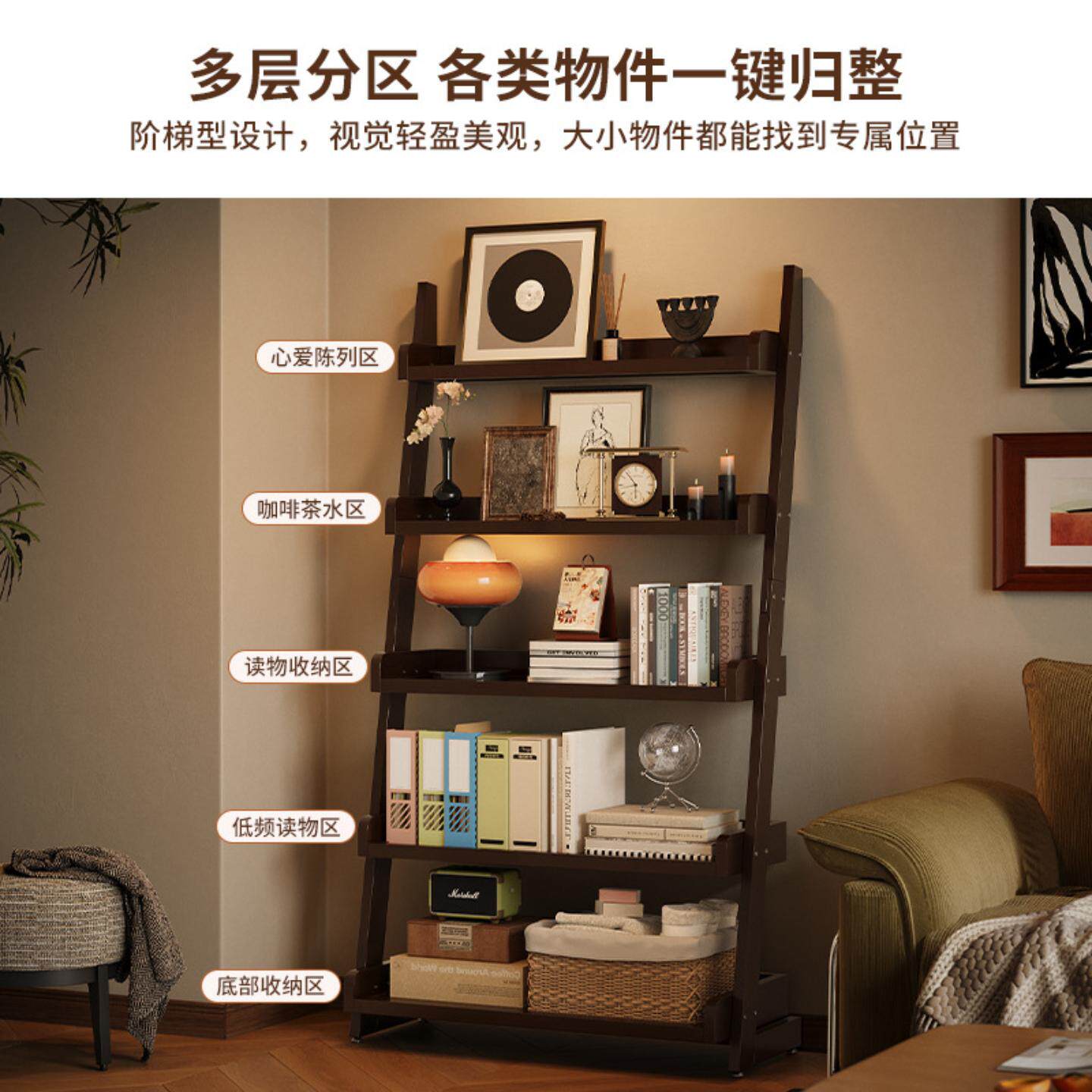 儿童书架客厅多层置物架家用落地一体靠墙收纳架书房杂物整理架子