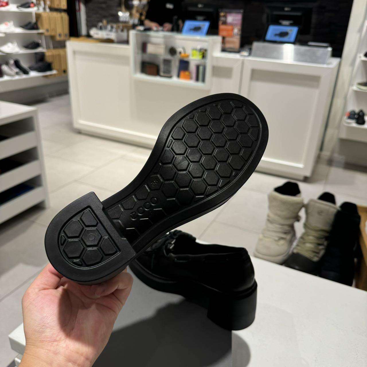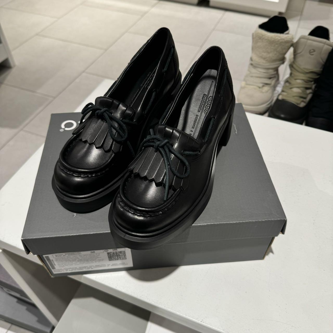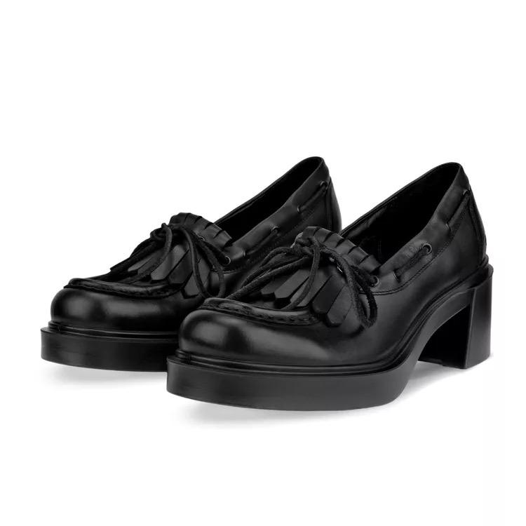 ECCO爱步女鞋新款流苏真皮厚底乐福鞋高跟复古百搭皮鞋单鞋223533