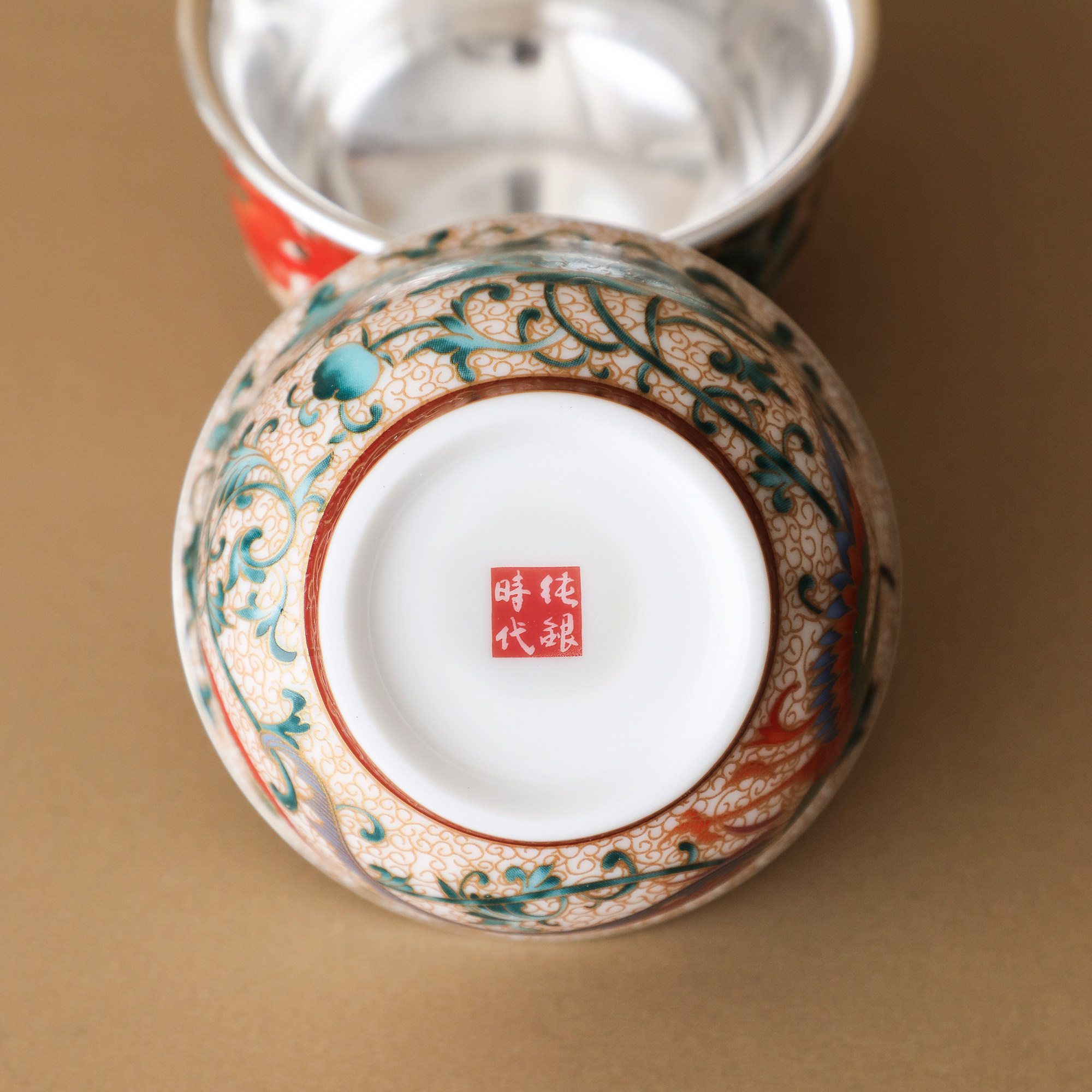 纯银时代彩凤瓷包银杯高端主人杯