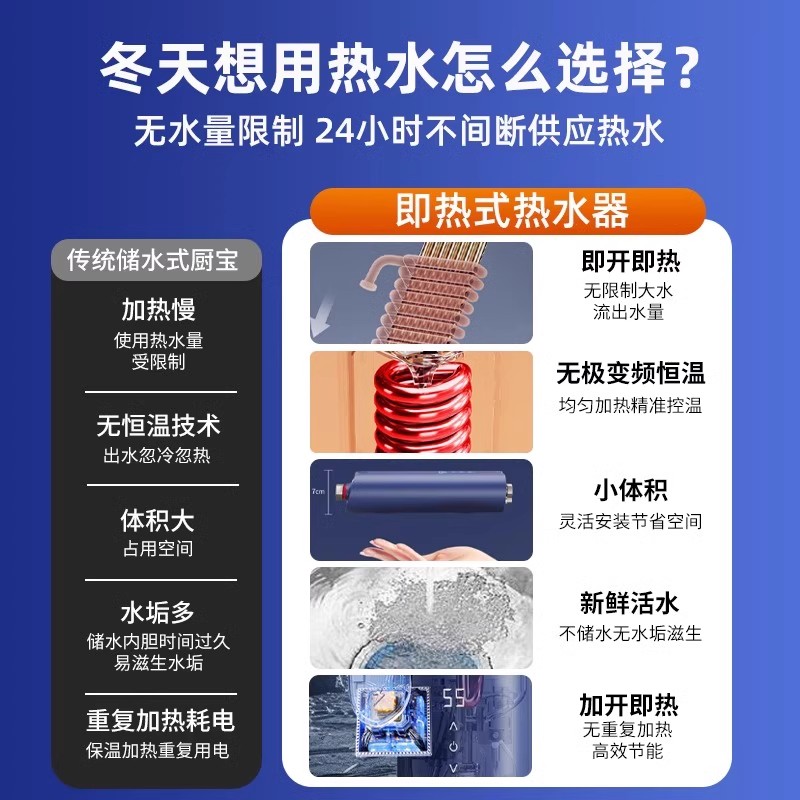 苏泊尔小厨宝即热式小型热水器台下点热水宝厨房卫生间家用免储水