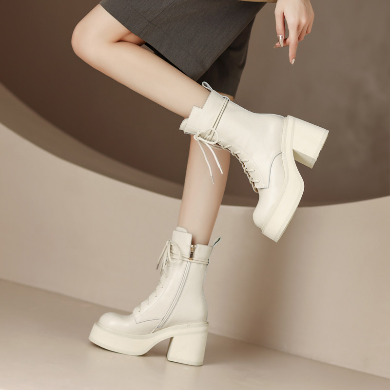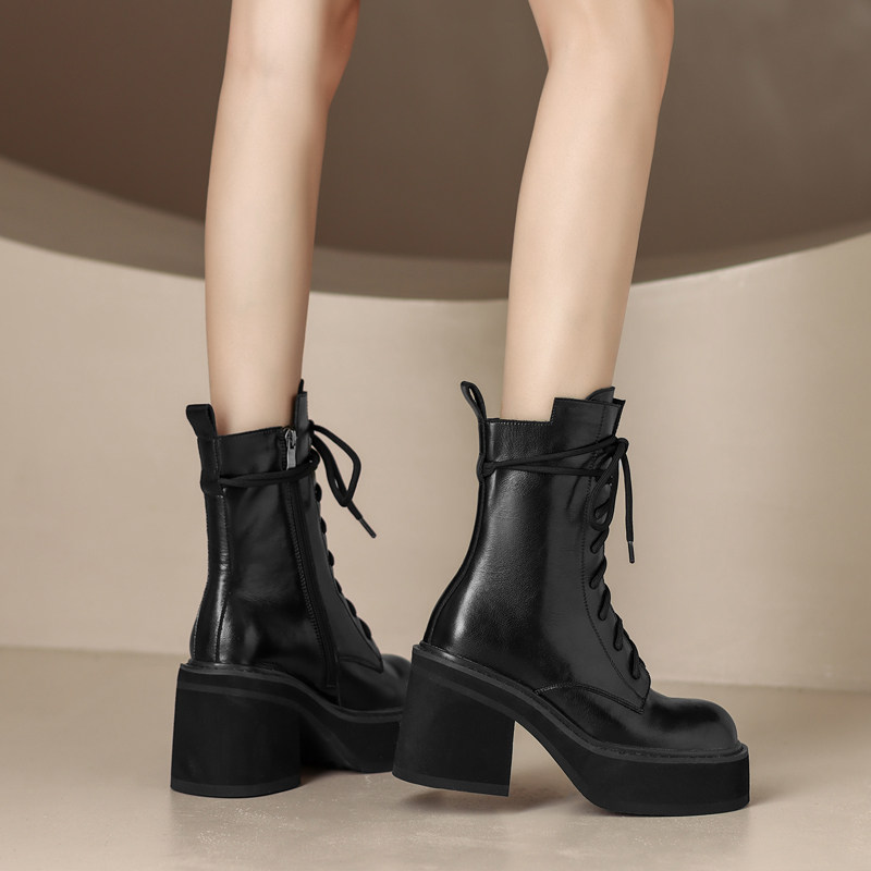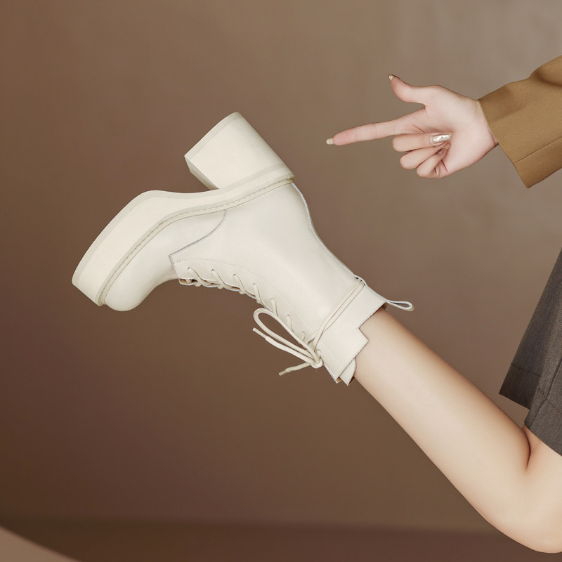 超高跟小个子增高马丁靴女2025年新款英伦风粗跟短靴防水台瘦瘦靴