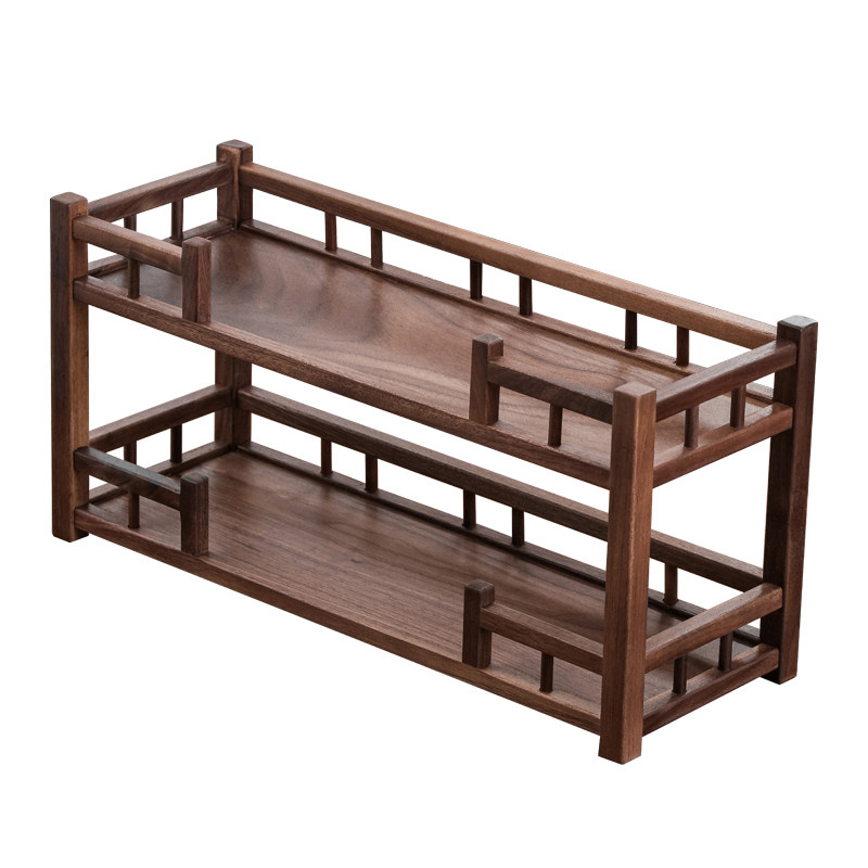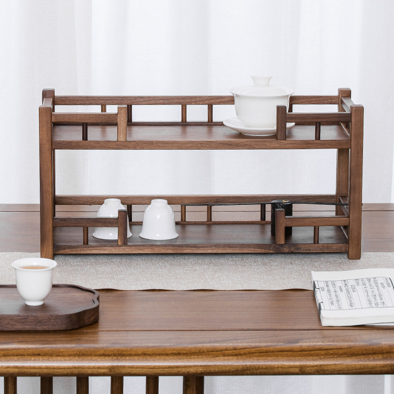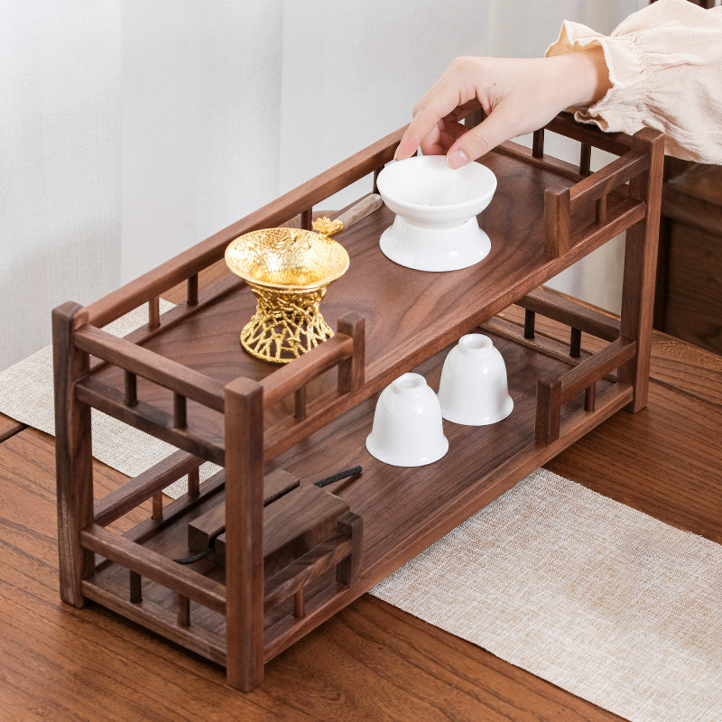 胡桃木茶杯架子实木茶具茶壶紫砂壶收纳架中式多宝阁桌面小博古架