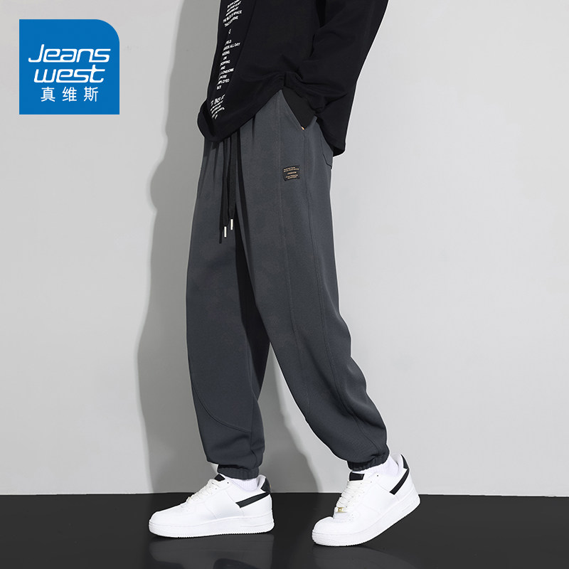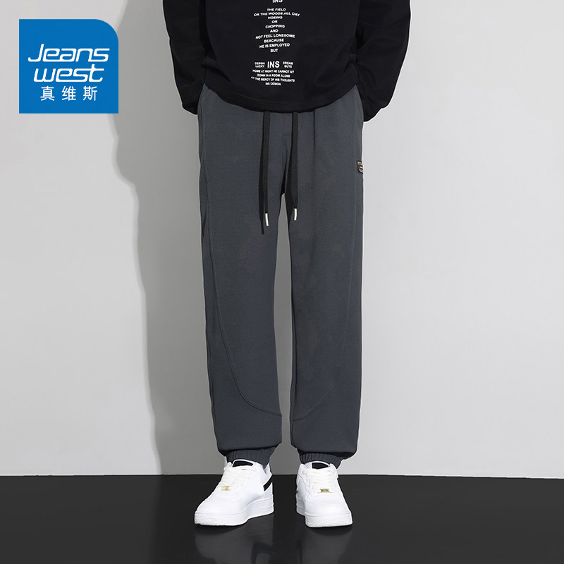 KZ真维斯春秋新款潮牌束脚裤男百搭抽绳运动长裤宽松通勤休闲裤子