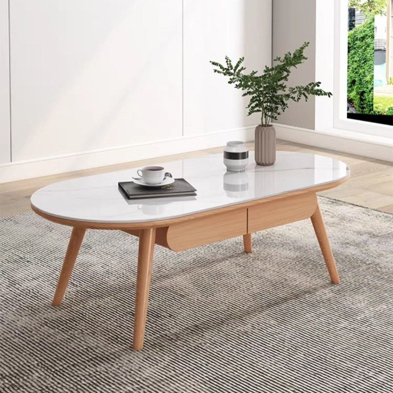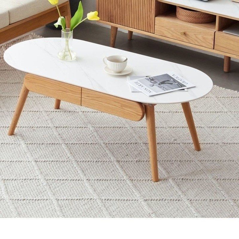 小户型茶几简约现代纯实木客厅家用原木椭圆形日式小茶几隆之意