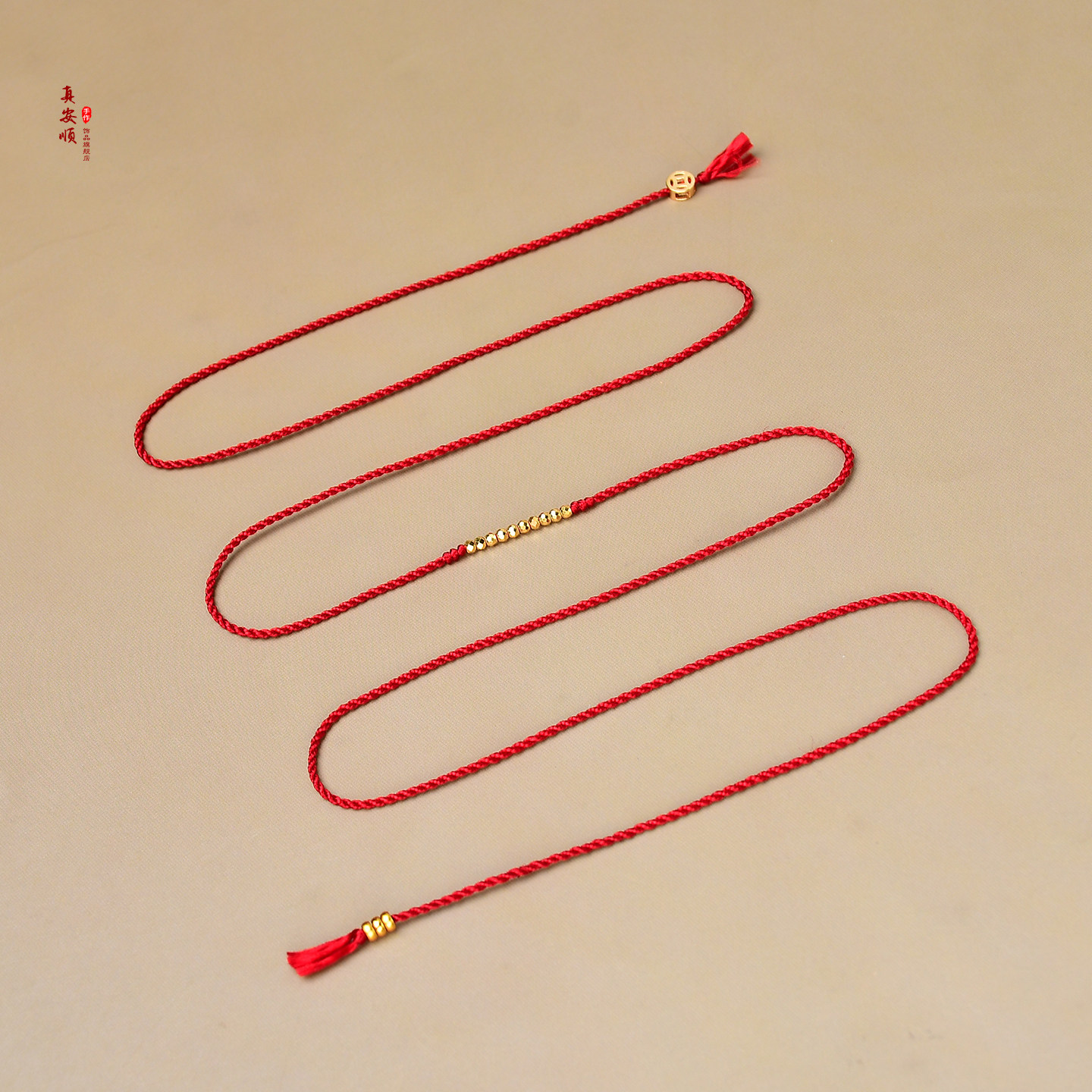 足金红绳腰带本命年转运珠桑蚕丝