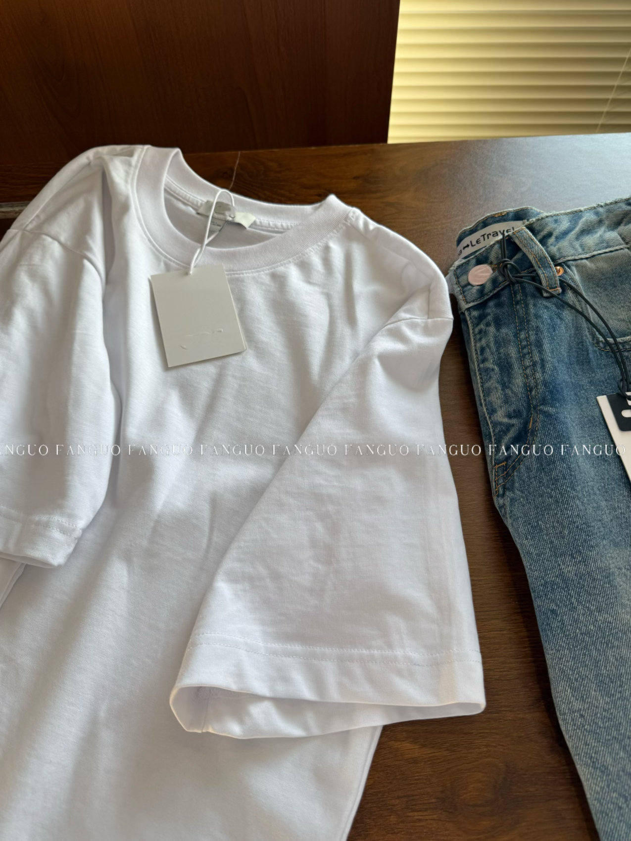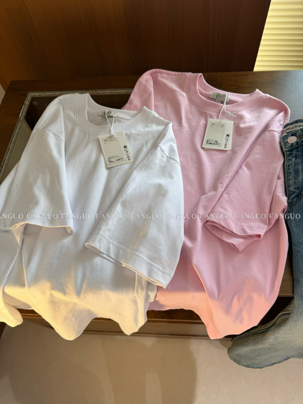 co*230g全棉重磅 宽松有范随意慵懒风休闲短袖白T恤女