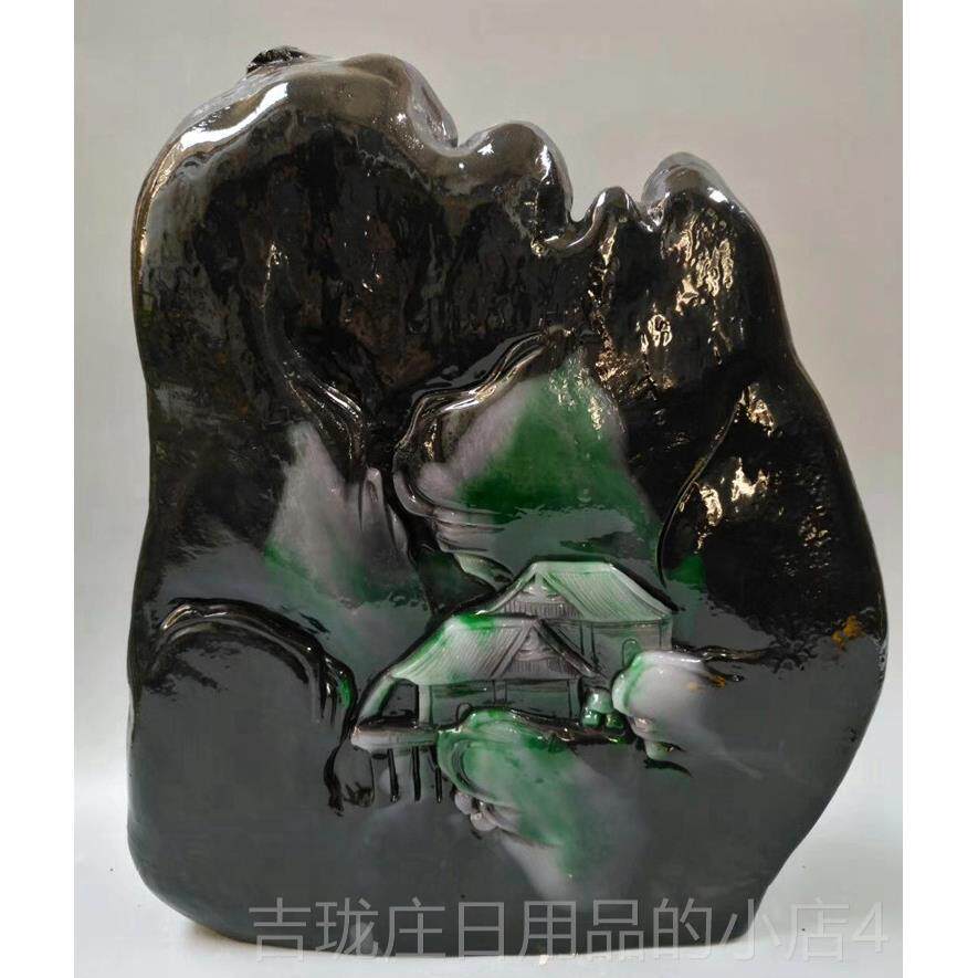 正品玉彷翡翠原石器石头件指日高升 岫玉山水玉摆件独山石雕工摆