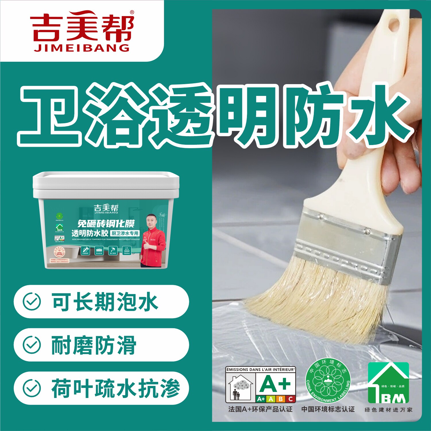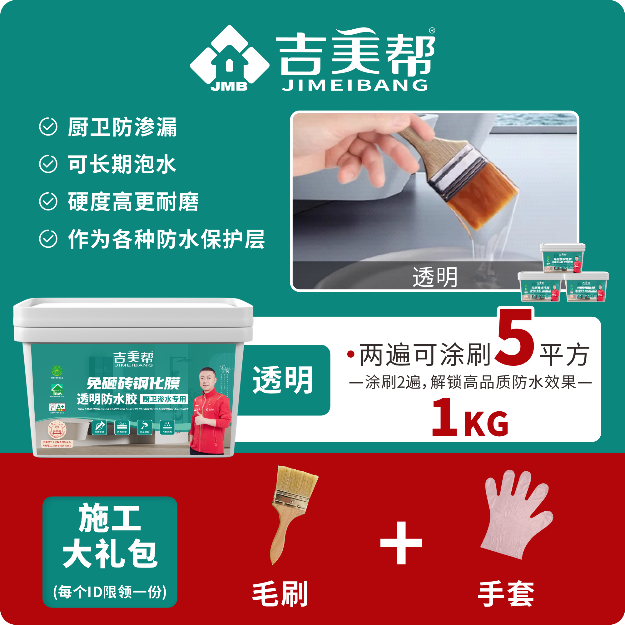 吉美帮免砸砖透明防水胶耐磨抗渗