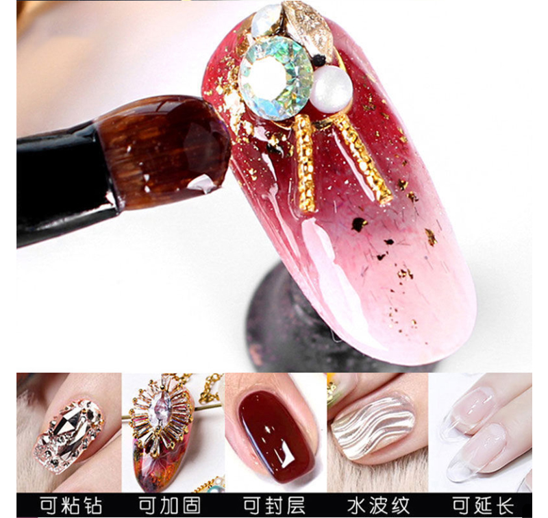 美甲硬式免洗封层多功能粘钻加固水波纹魔镜粉饰品光疗胶日式罐装