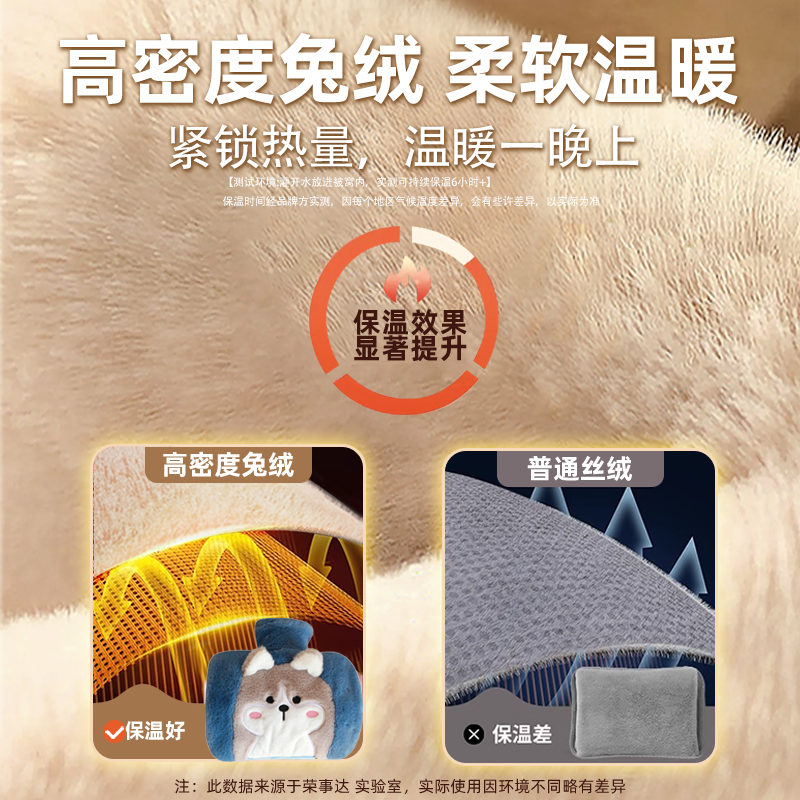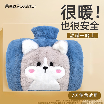 荣事达热水袋注水式暖水袋灌水款暖手袋可插手暖宝宝毛绒暖手宝女