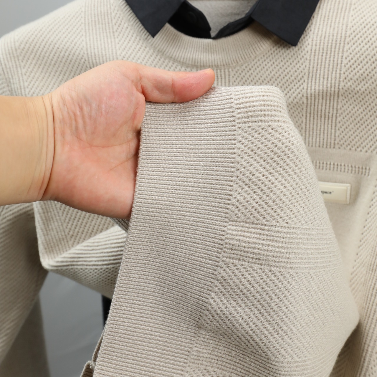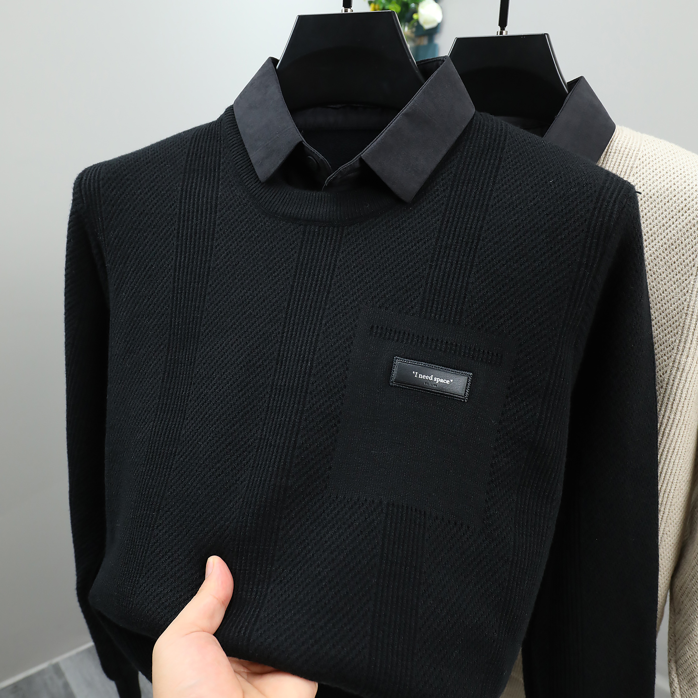 高级感男士假两件毛衣秋冬季加厚保暖衬衫领休闲时尚针织打底衫男