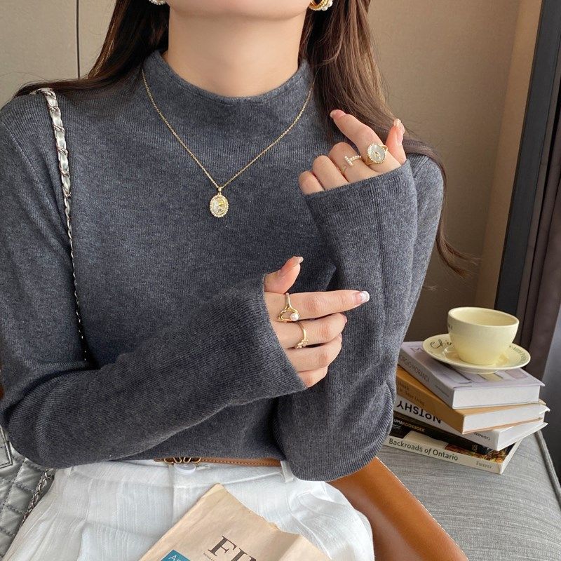 灰色半高领针织打底衫女装内搭2024秋冬新款修身气质毛衣长袖上衣