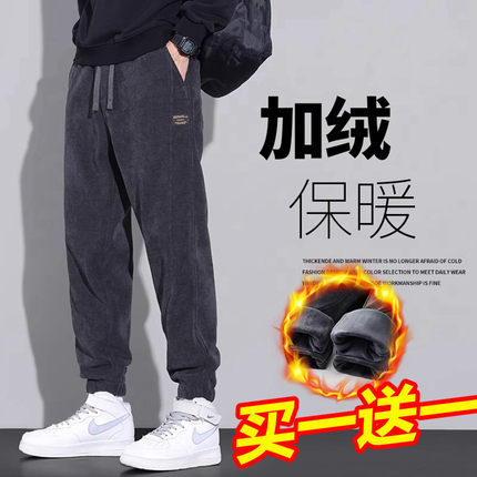 Yishion以纯男装正品官店冬季裤子男加绒加厚休闲裤灯芯绒运动卫