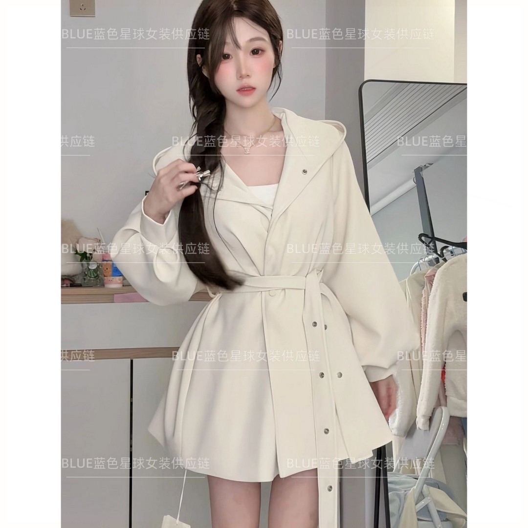工作室原创BLUE蓝色星球女装春款外套女显瘦灯笼袖外套女小个风衣