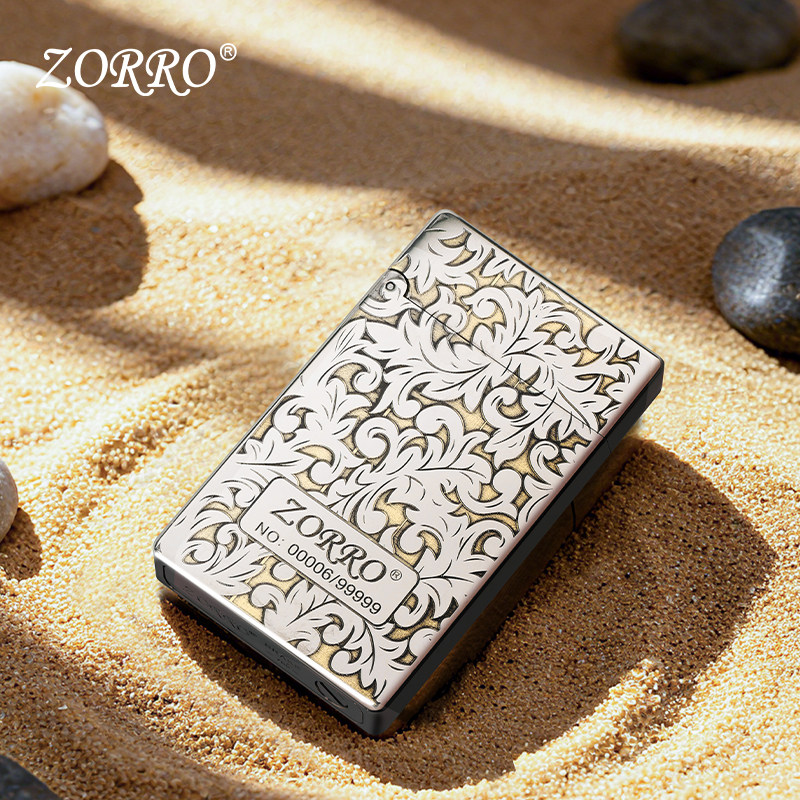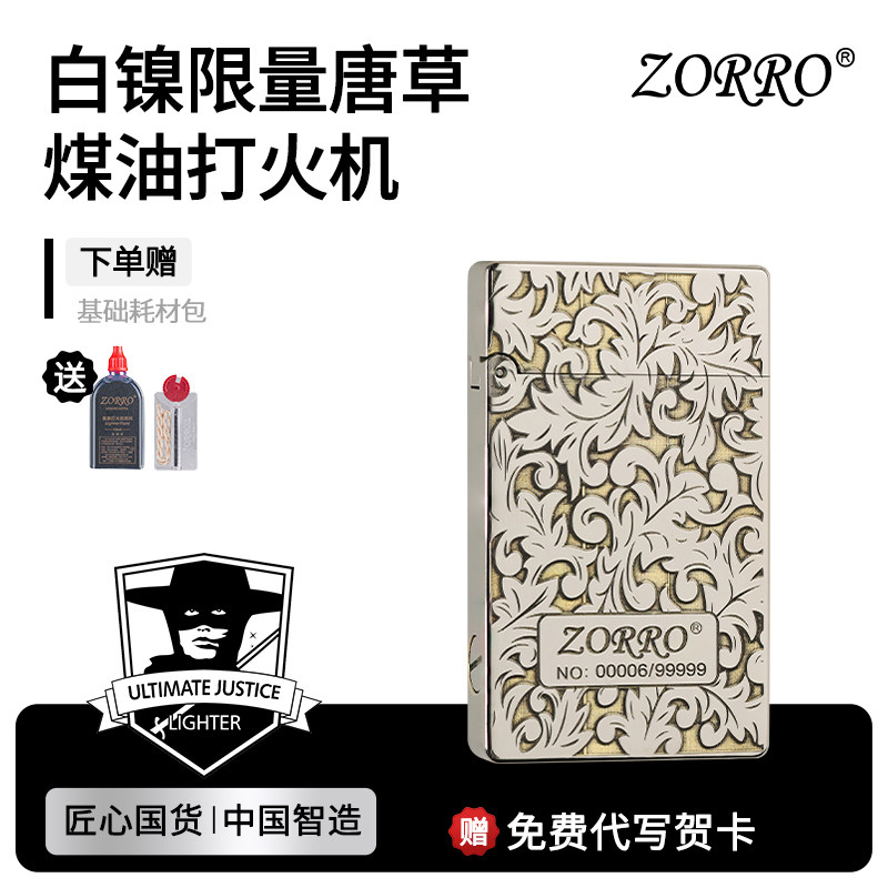 ZORRO佐罗官方旗舰店白镍限量唐草朗声煤油打火机防风生日礼物799