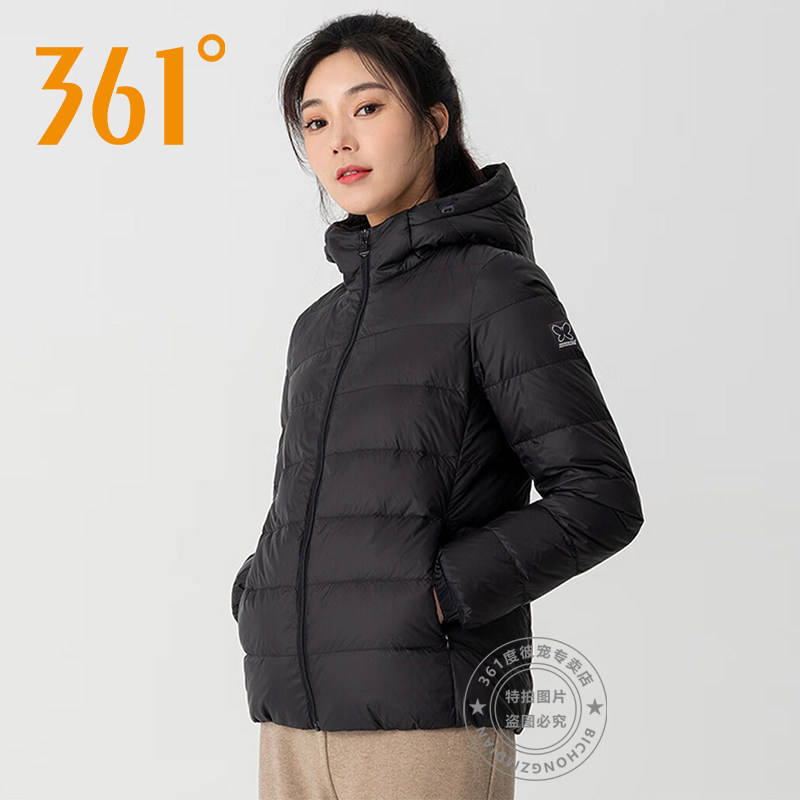361度羽绒服女冬季新款轻薄连帽羽绒夹克保暖短款运动外套女装