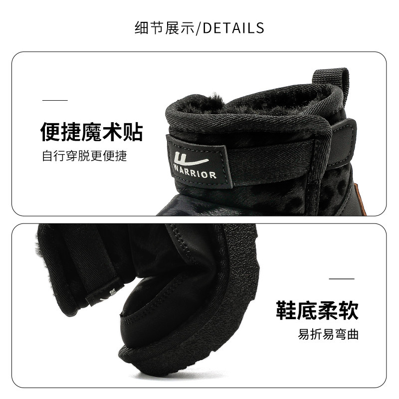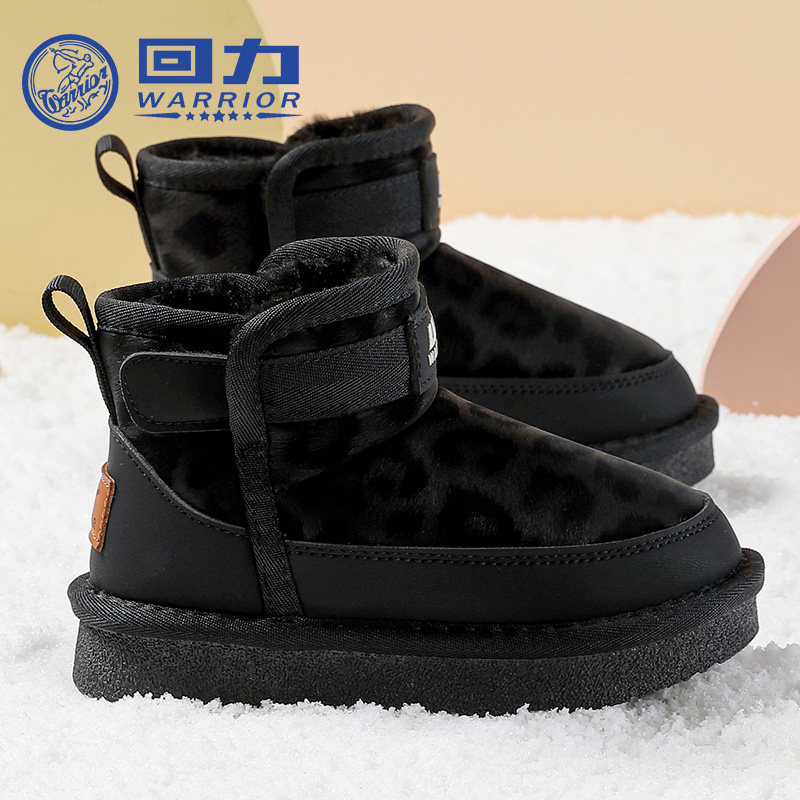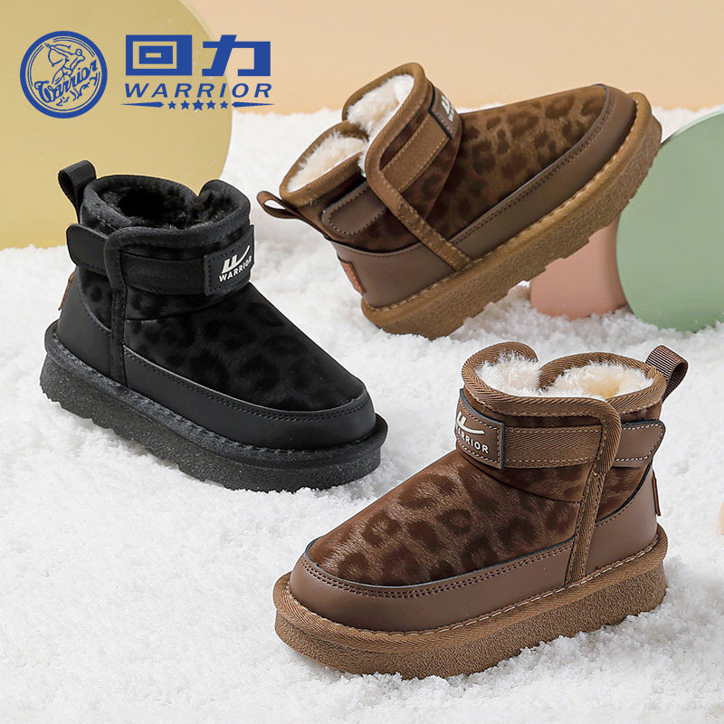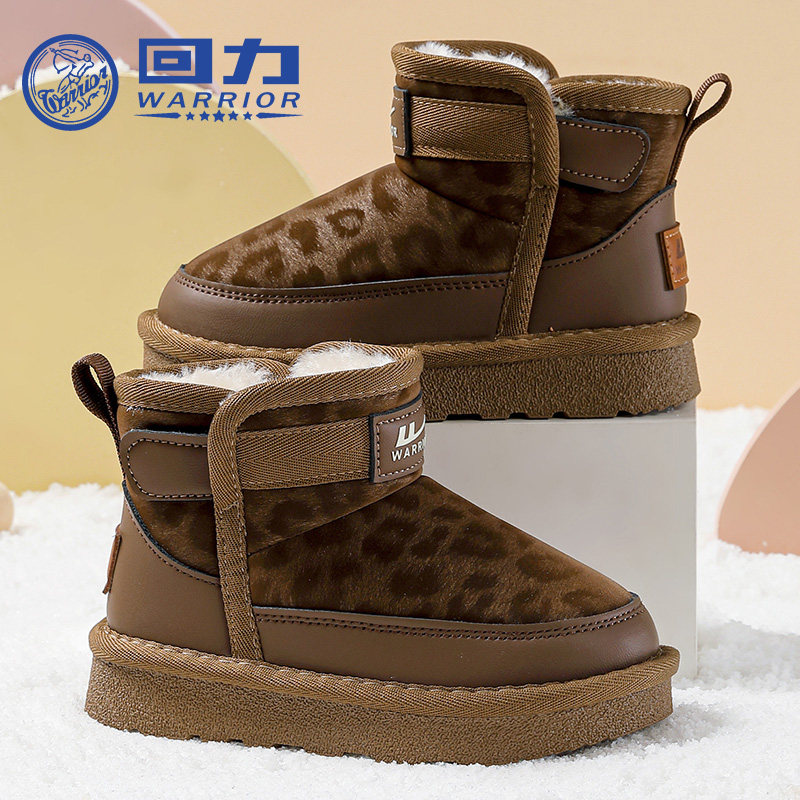回力童鞋女童豹纹雪地靴2025冬季新款儿童保暖大棉鞋女孩软底棉靴