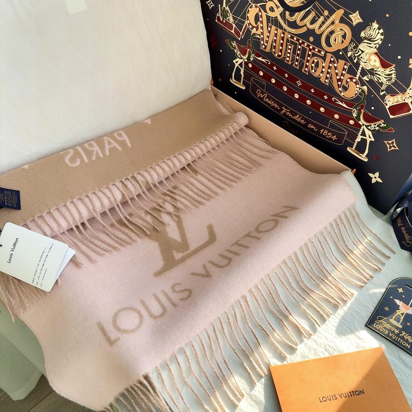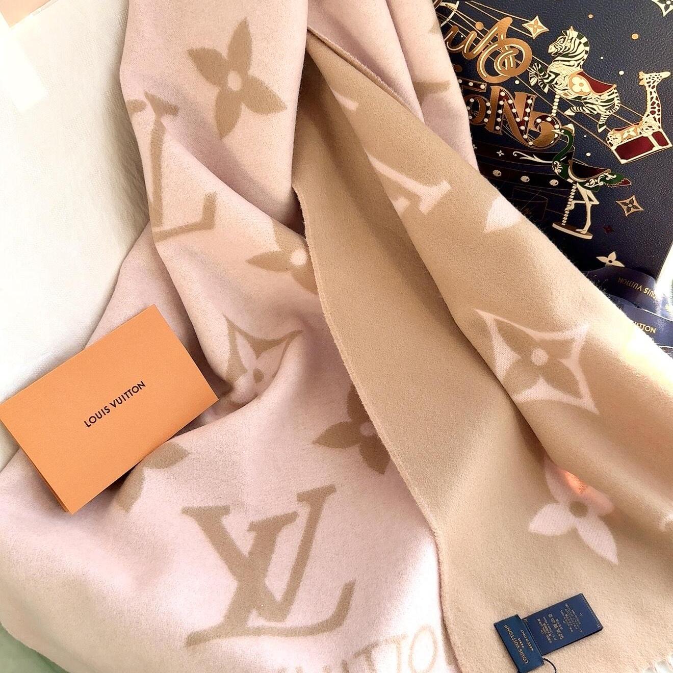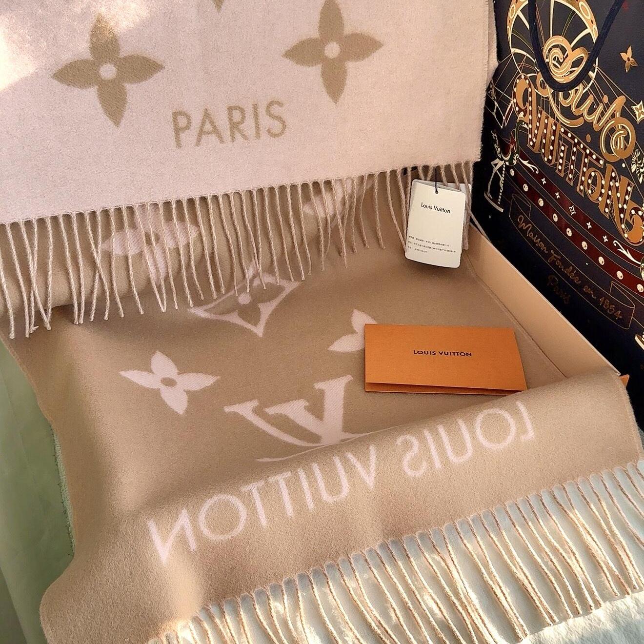 法国代购LouisVuitton路易威登黑色双面男女羊绒围脖老花披肩围巾