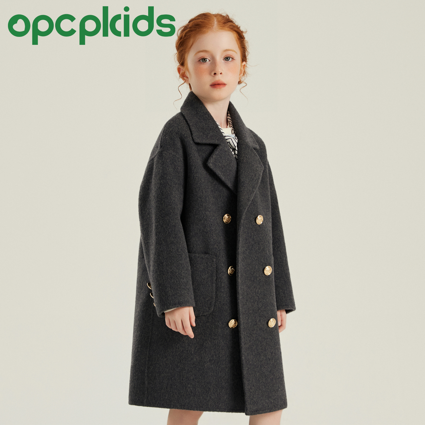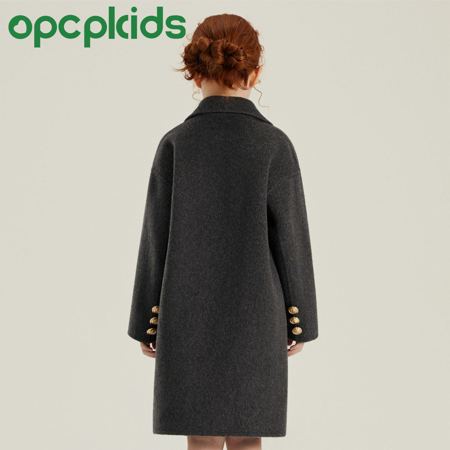 OPCP儿童双面羊绒大衣秋冬新款女童呢子外套中大童男童中长款风衣