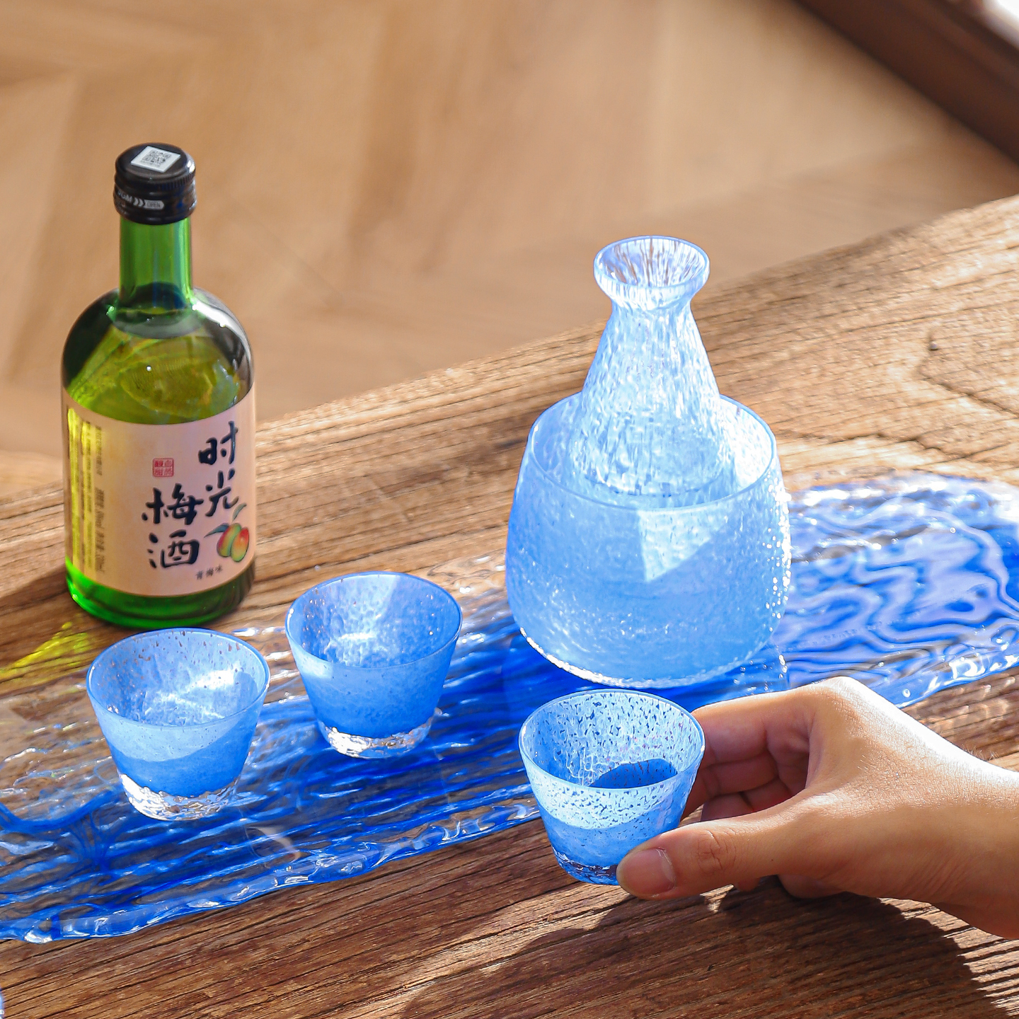 日式清酒壶套装星蓝玻璃果酒白酒杯小冰酒器清酒杯日本清酒酒具