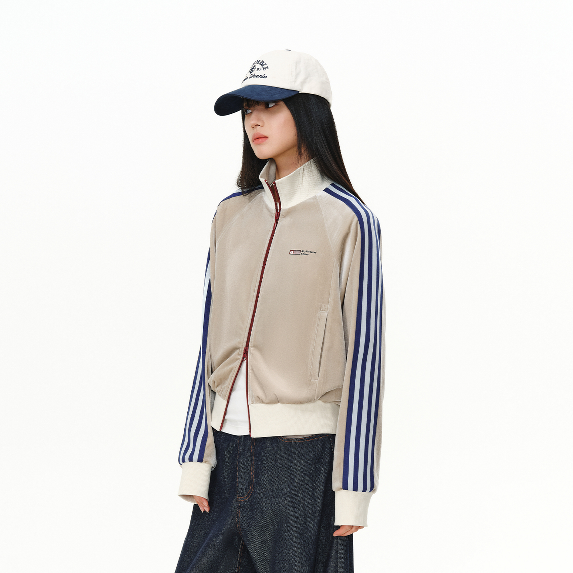 ATRY运动丝绒卫衣夹克女春秋新款国潮牌美式休闲短款拉链立领外套