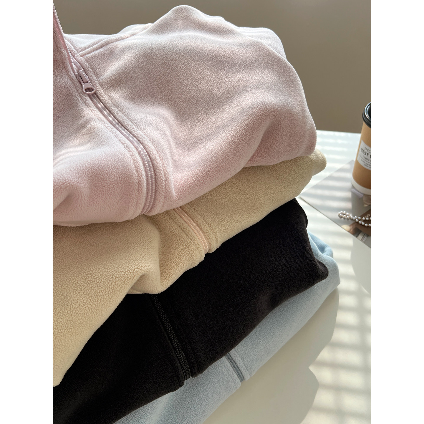 韩版复古双面绒开衫连帽卫衣女减龄小众保暖拉链外套秋冬新款学生