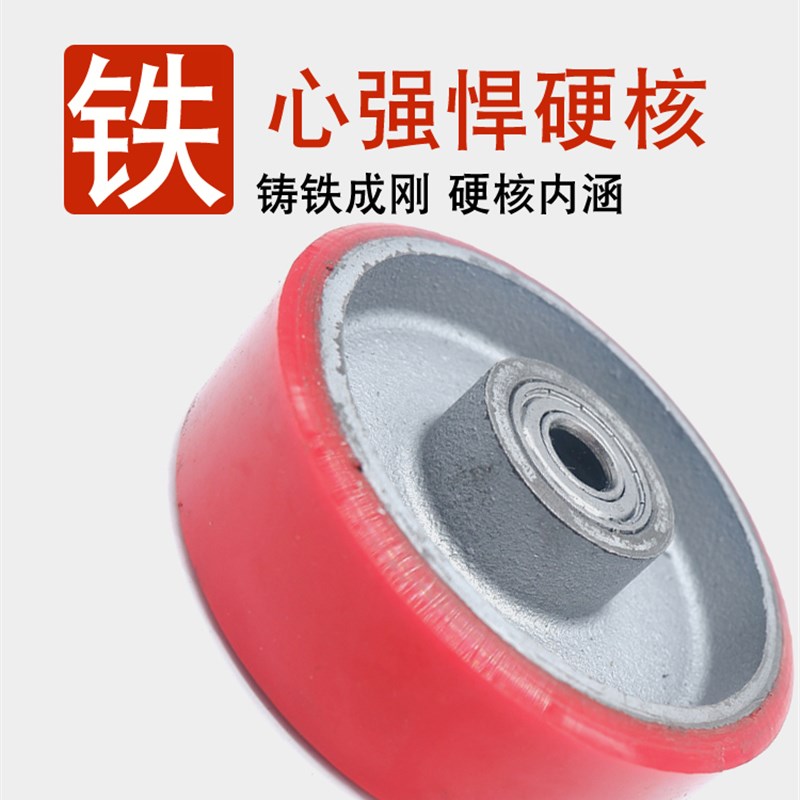 现货速发脚轮寸4铁芯PU铁心刹车轮子载重型双轴承轱辘设备机器货