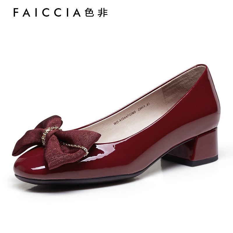 色非春秋高跟鞋红色鞋子粗跟浅口单鞋女中跟晚晚鞋婚鞋新娘鞋A154