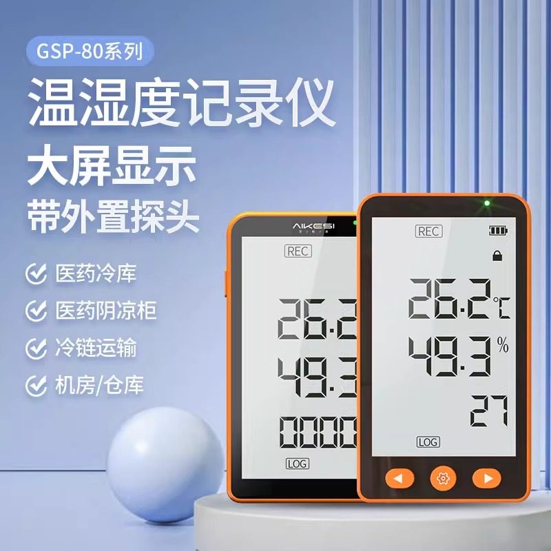 艾科思高精度自动温湿度记录仪药店温度计数显温度仪表GSP-80PRO