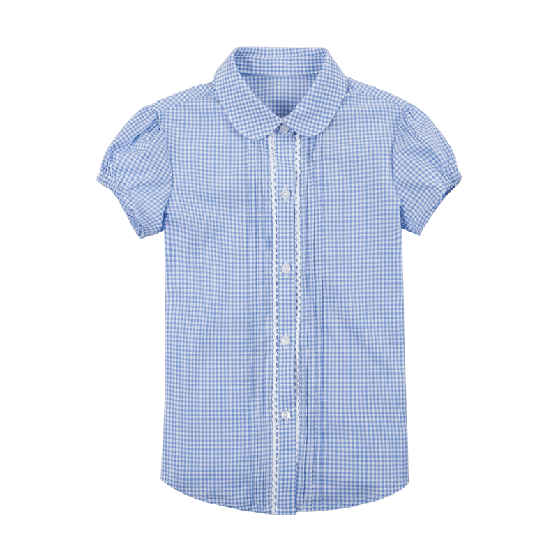 伊顿纪德牙签褶花边拼接小圆领女通短袖衬衫泡泡袖衬衣16C202