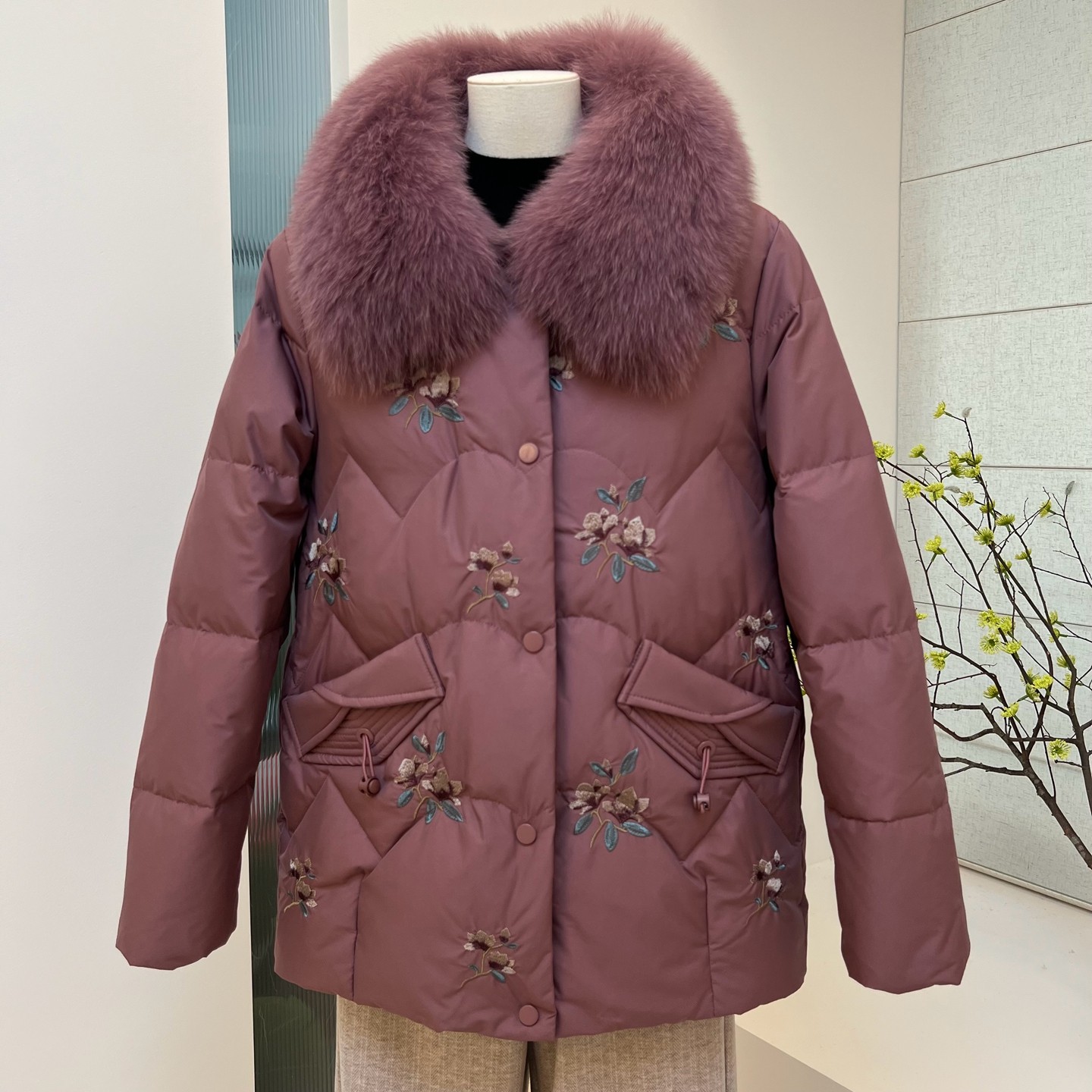 冬季妈妈装羽绒服毛领外套上衣中老年刺绣宽松保暖舒适老人衣服女