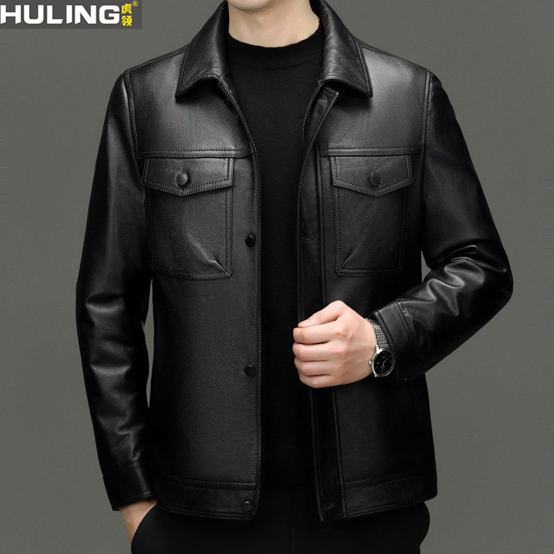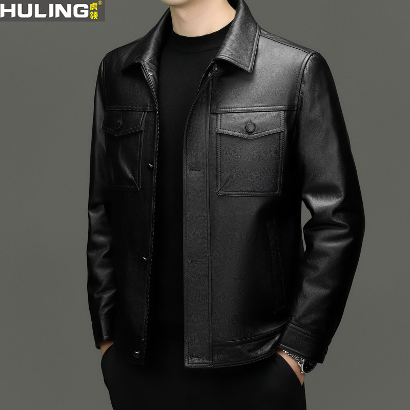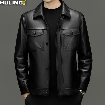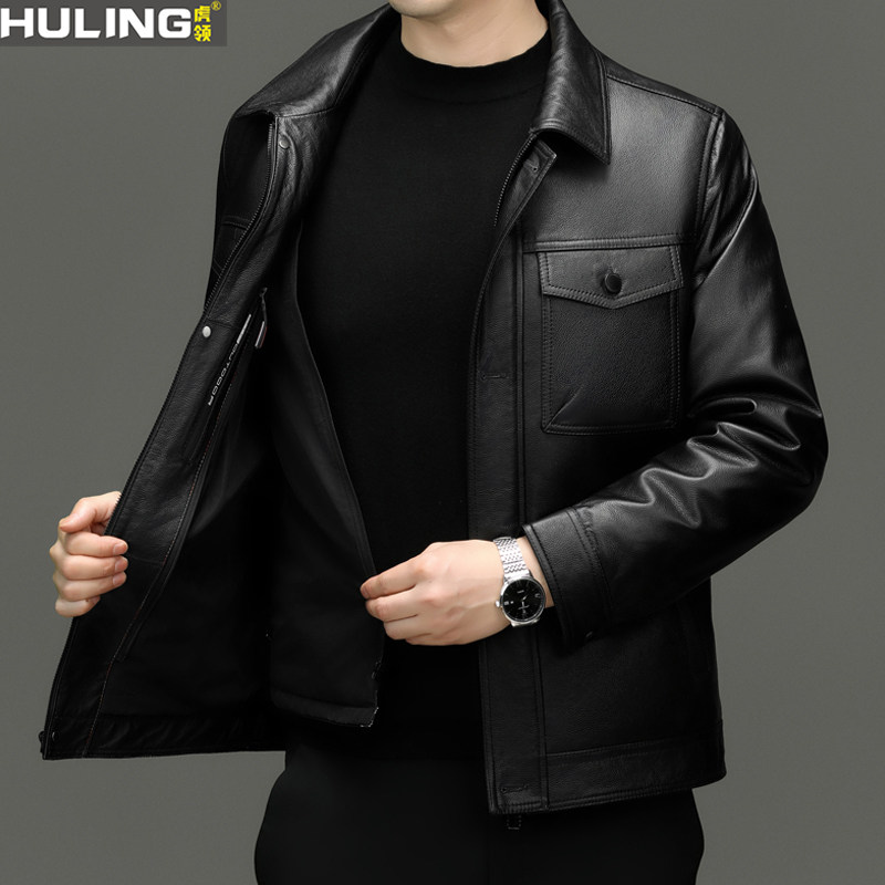 男士真皮皮衣可脱卸白鸭绒内胆秋冬季商务休闲翻领牛皮羽绒服外套