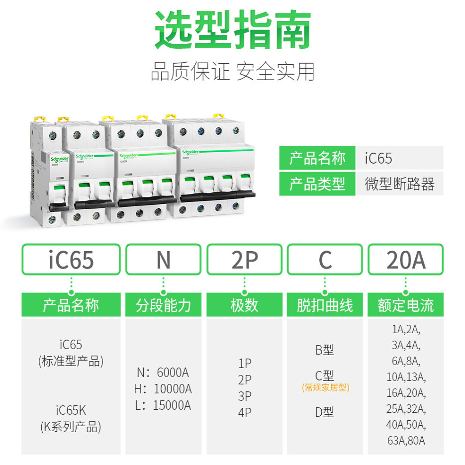 施耐德家用A9系列IC65N空开c63漏电保护器家用断路器漏电空气开关