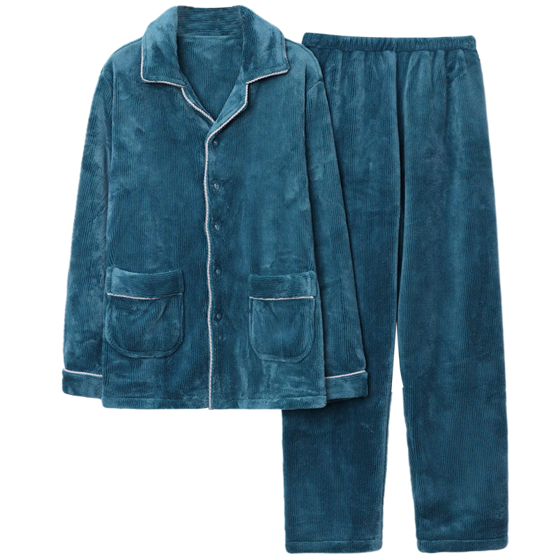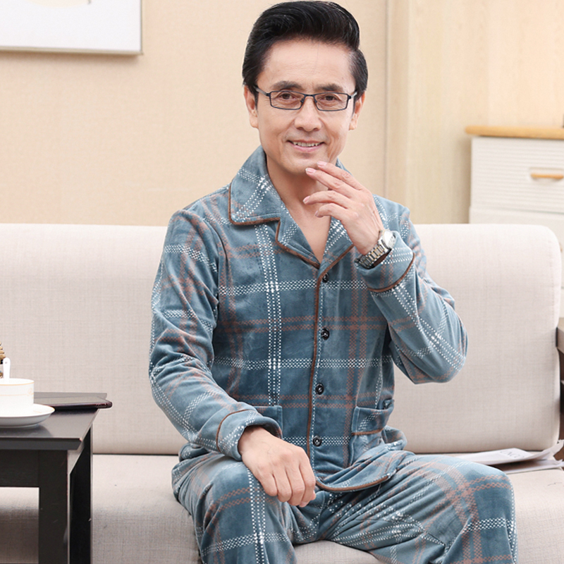 男士珊瑚绒睡衣宽松大码法兰绒秋冬季中年爸爸加绒加厚家居服套装
