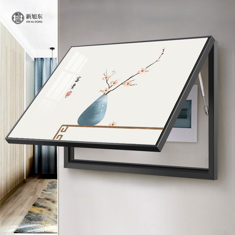 新中式电表箱装饰画免打孔2025新款遮挡餐厅弱配电箱挂画现代简约