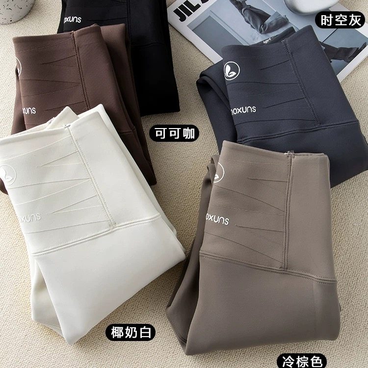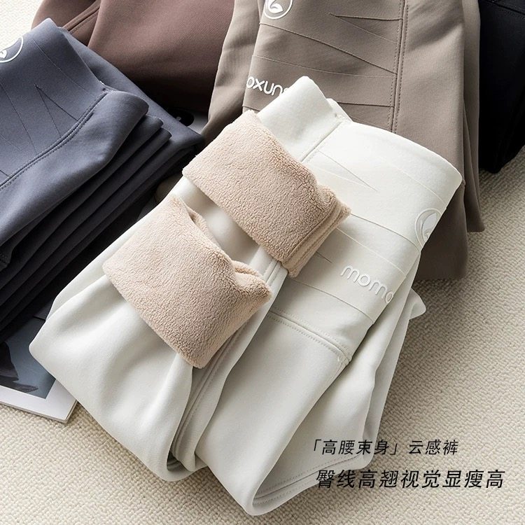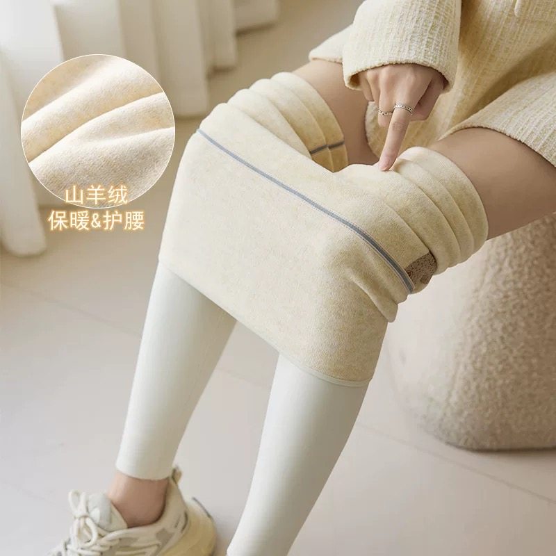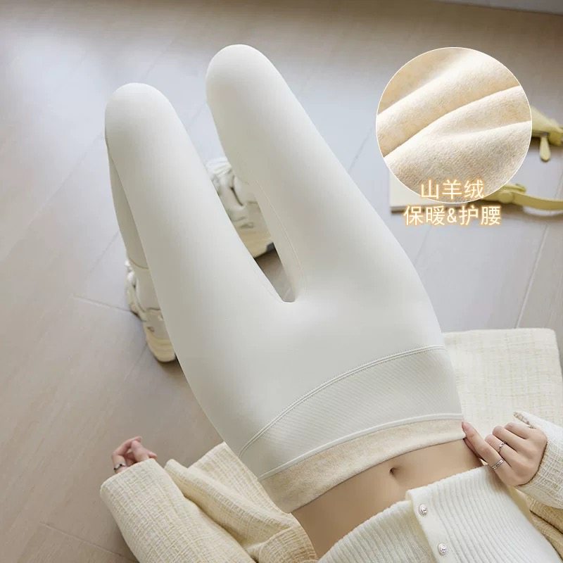 奶白色鲨鱼裤女秋冬新款高腰打底裤外穿加绒加厚保暖收腹瑜伽裤子